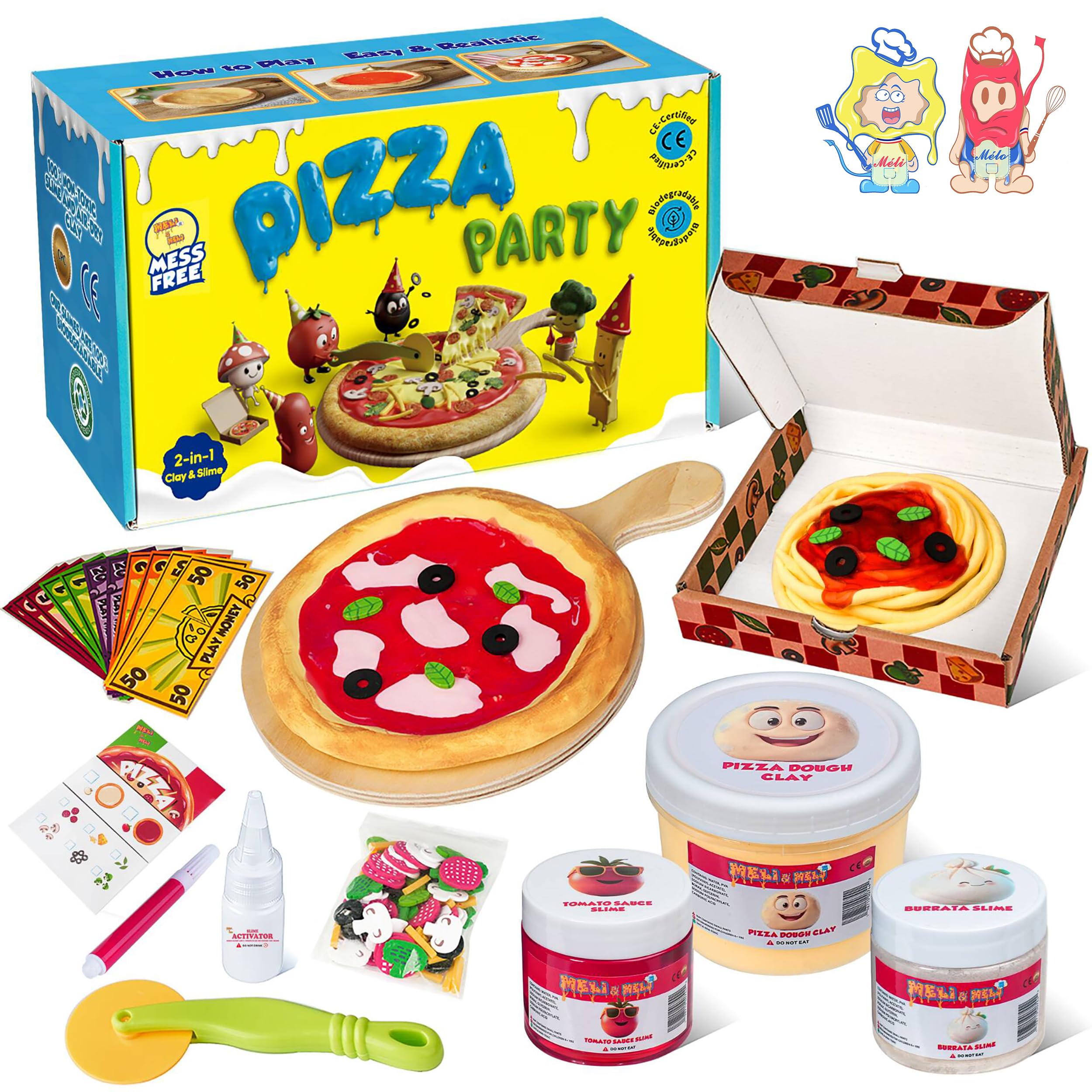 Kit de slime para fiestas de pizza para niños, antiadherente, sin desorden para artes y manualidades, haz tu propio juego de model