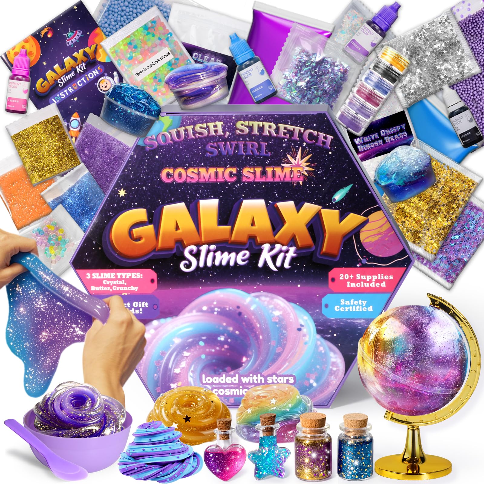 Kit de slime Galaxy para niñas de 8 a 12 años, más de 20 suministros de slime, juego de slime cósmico crujiente de mantequilla de