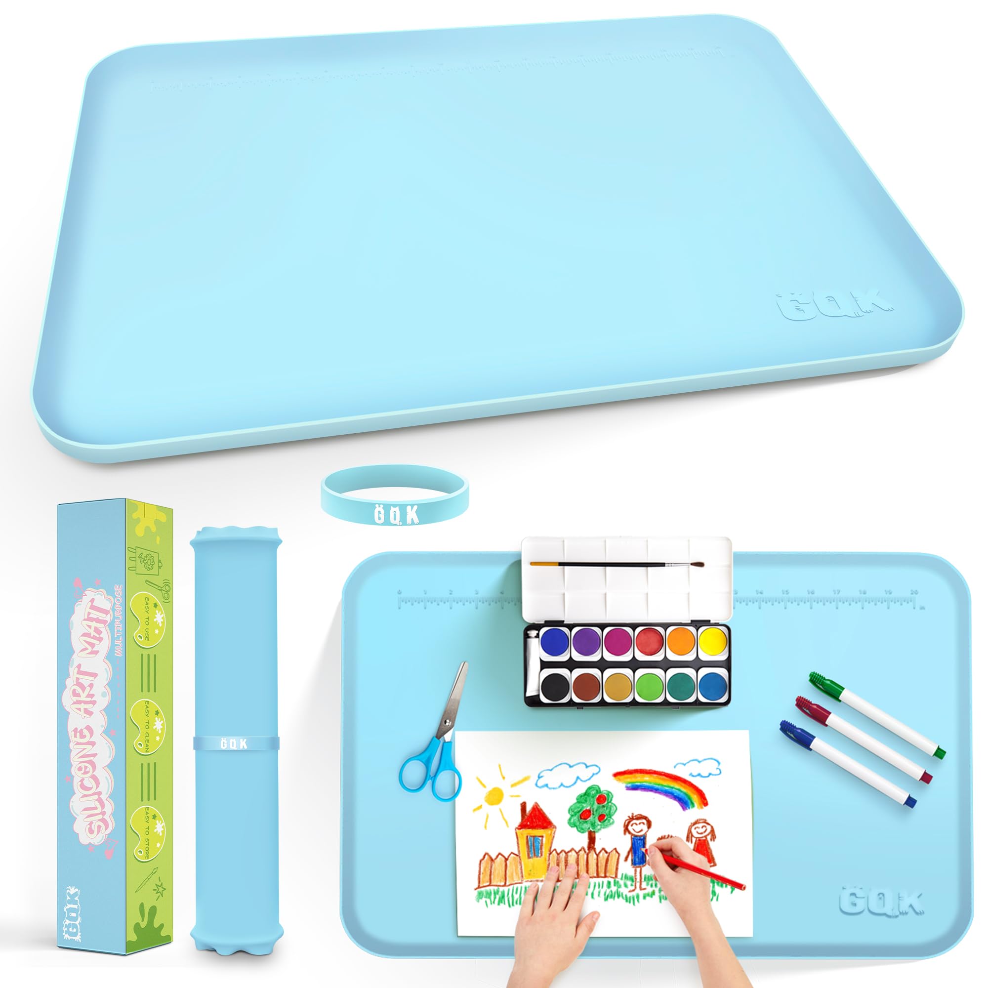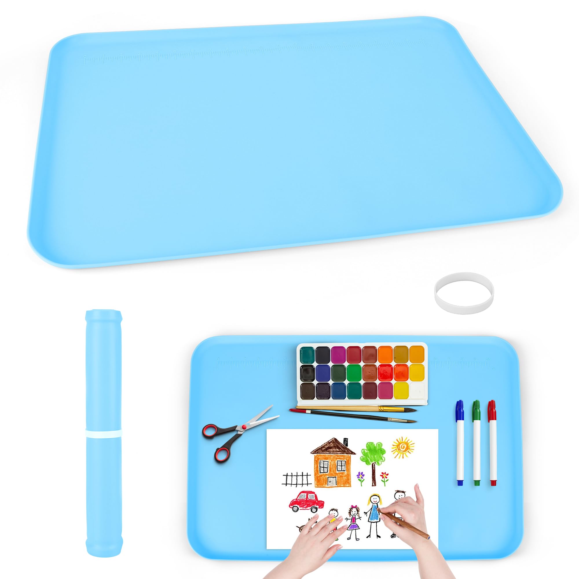 GQK Tapete de silicona para manualidades, 24 x 16 pulgadas, tapete de pintura para niños con lados elevados para mantenerse ordena