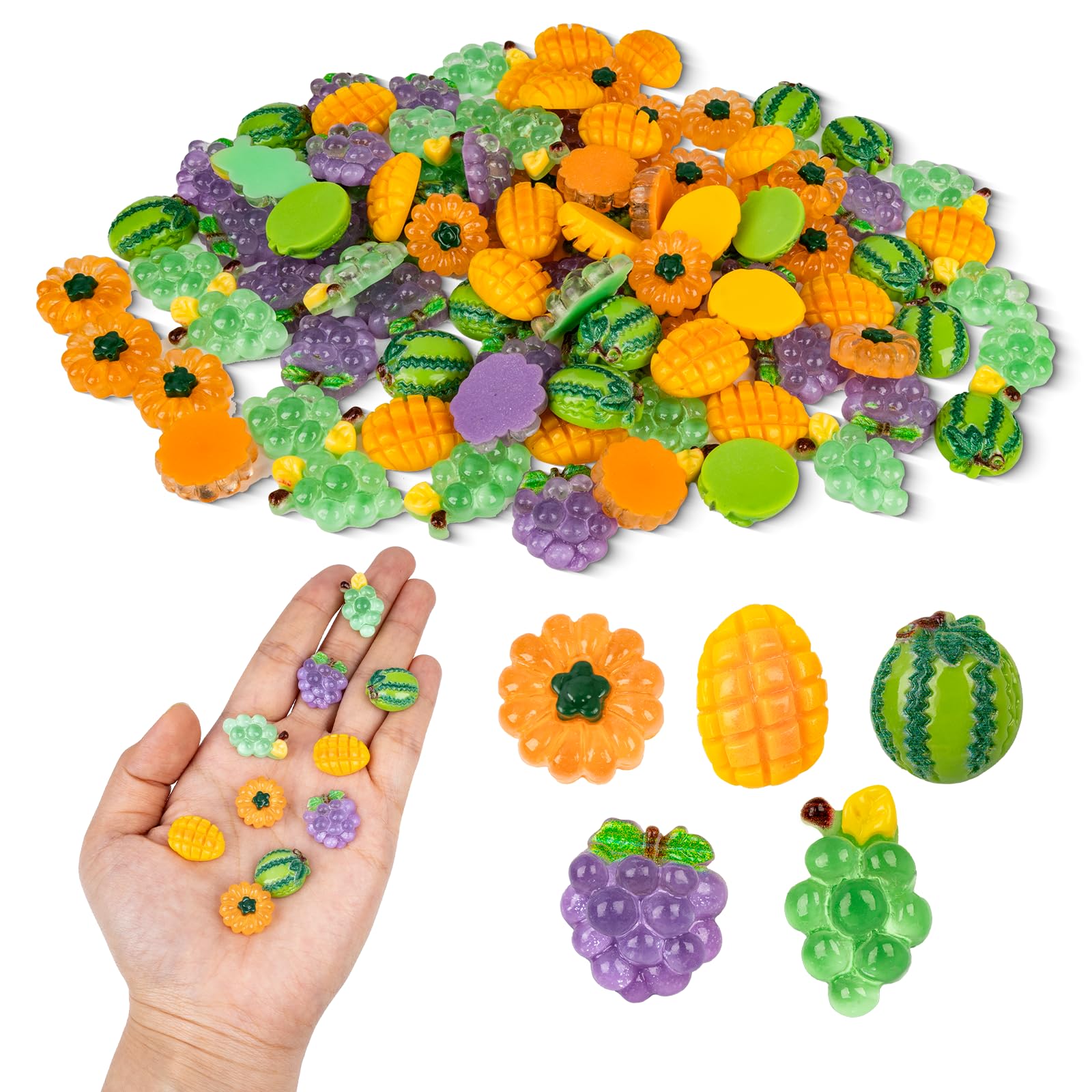 100 dijes de slime con parte trasera plana de frutas mixtas, kit de fabricación de joyas de resina, para manualidades, álbumes de