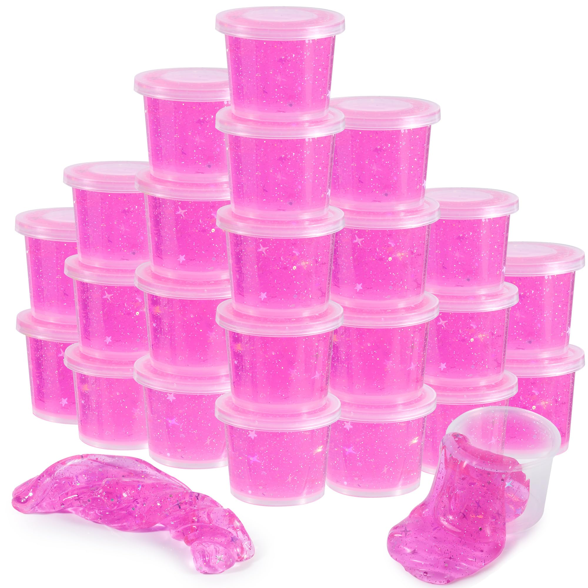 Paquete de 24 juguetes brillantes de slime rosa galaxia para niñas, elástico y antiadherente, juguete para aliviar el estrés, rell