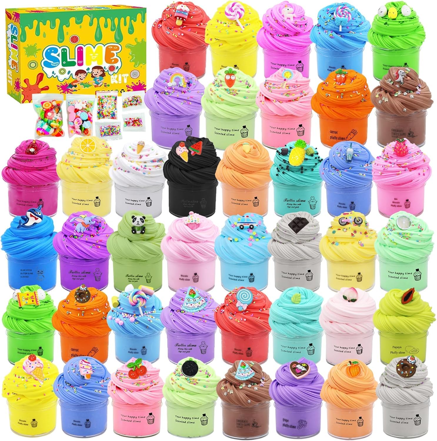 Kit de slime de mantequilla con 64 unidades, súper suave y antiadherente, regalos de cumpleaños para niños y niñas, recuerdos de f