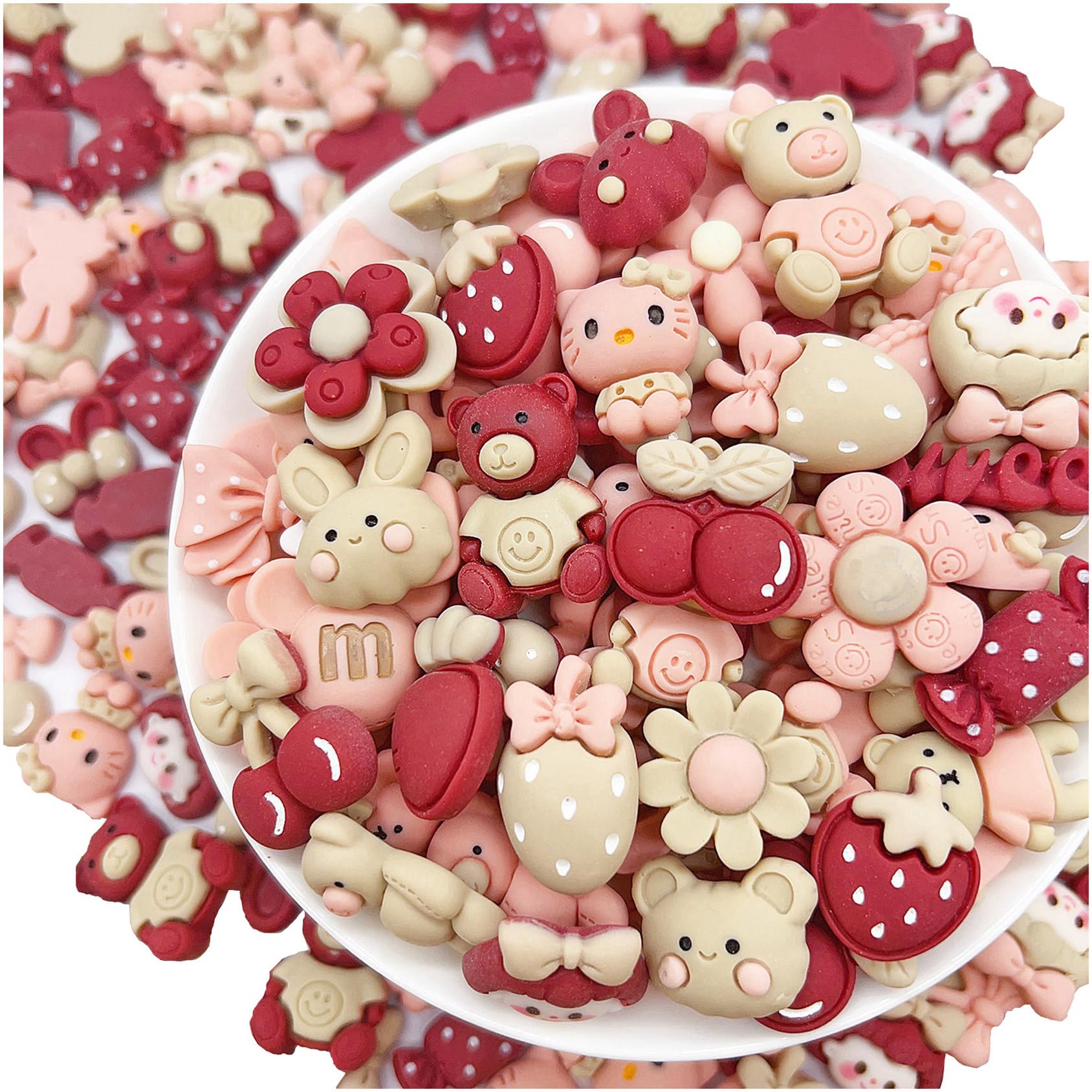 JINDUODUO 50 dijes de resina con parte trasera plana a granel para manualidades, dijes mixtos de parte trasera plana para slime, b
