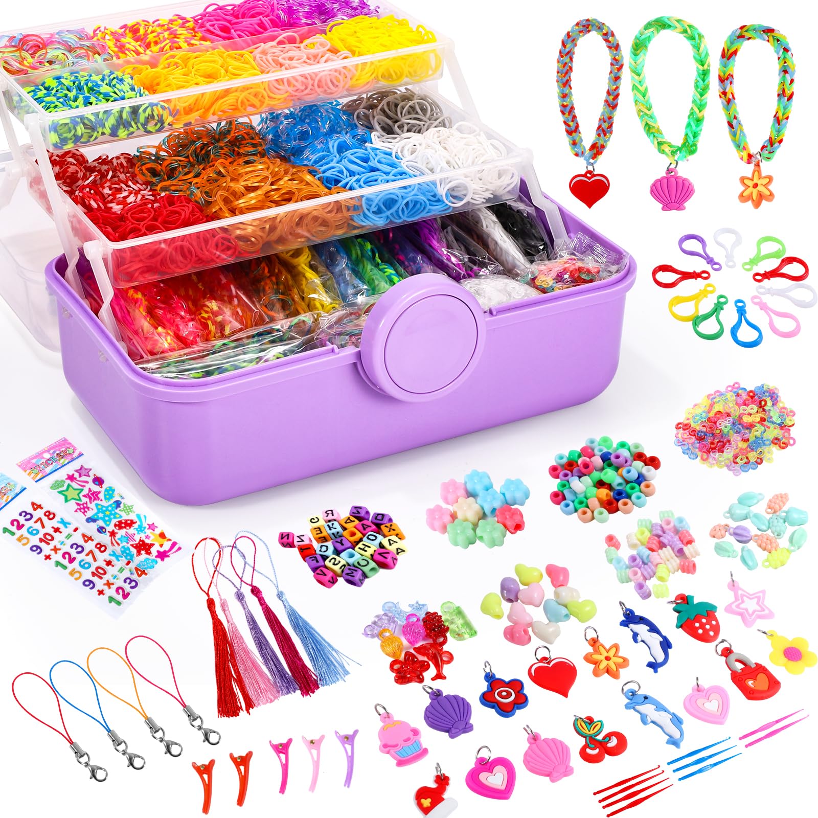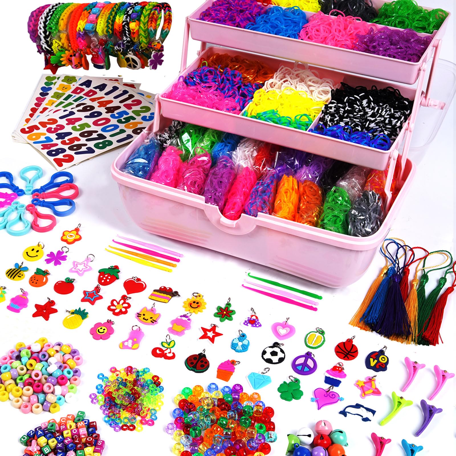 Kit de fabricación de pulseras para niñas de 7, 8 a 12, kit de pulsera de goma de tela con más de 1000 bandas de telar, telar de t