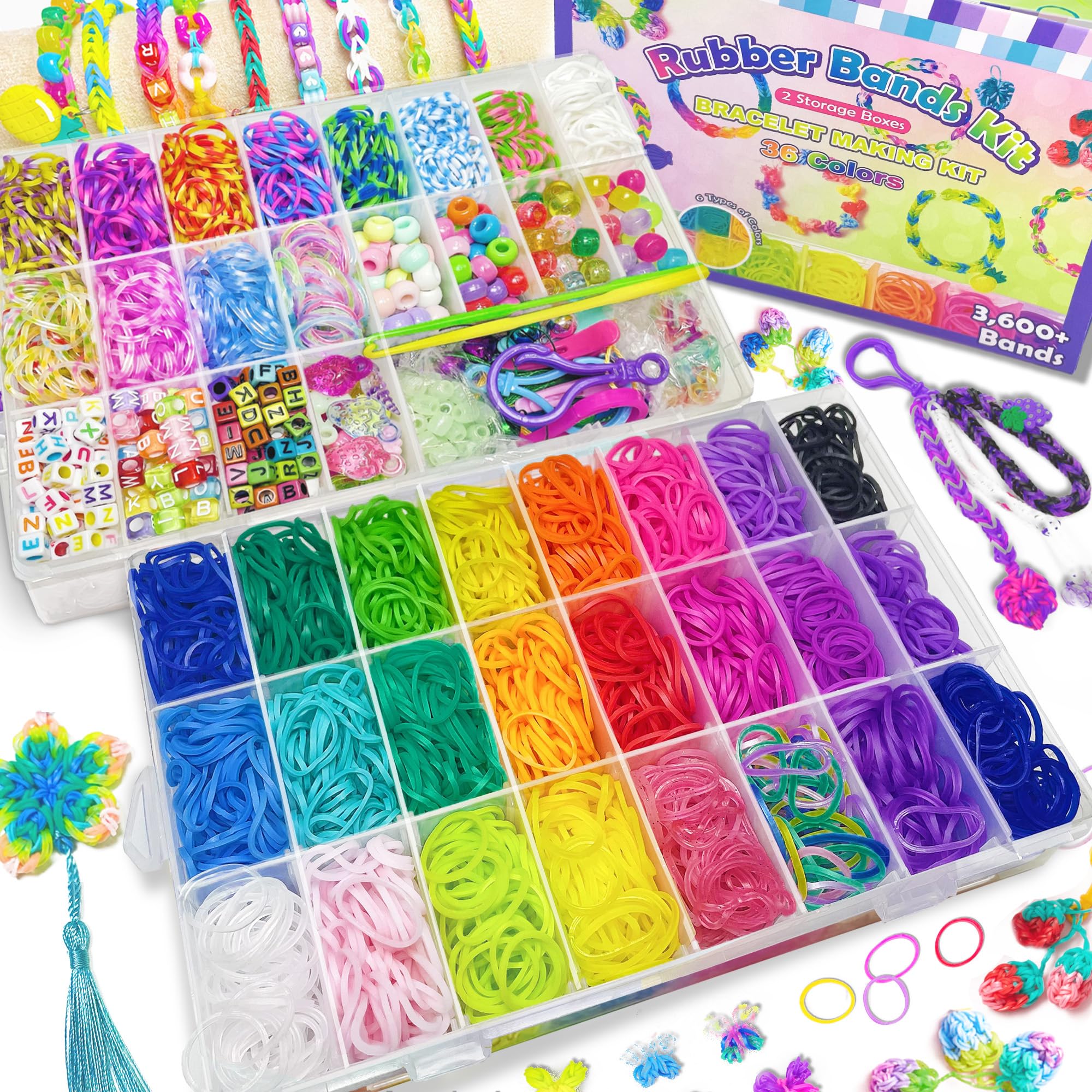 Leamood Juego de 4000 bandas de goma para hacer pulseras, 36 colores para niños de 6 a 12 años con más de 450 cuentas alfa y pony,