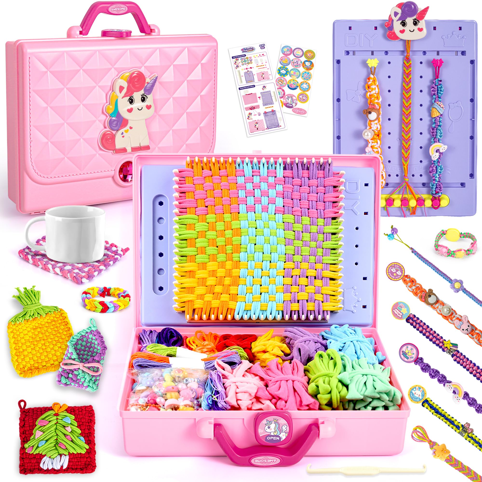ELFJOY Kit de pulsera de la amistad 2 en 1, kit de telar de tejido para niños, manualidades y manualidades para niñas, telares de