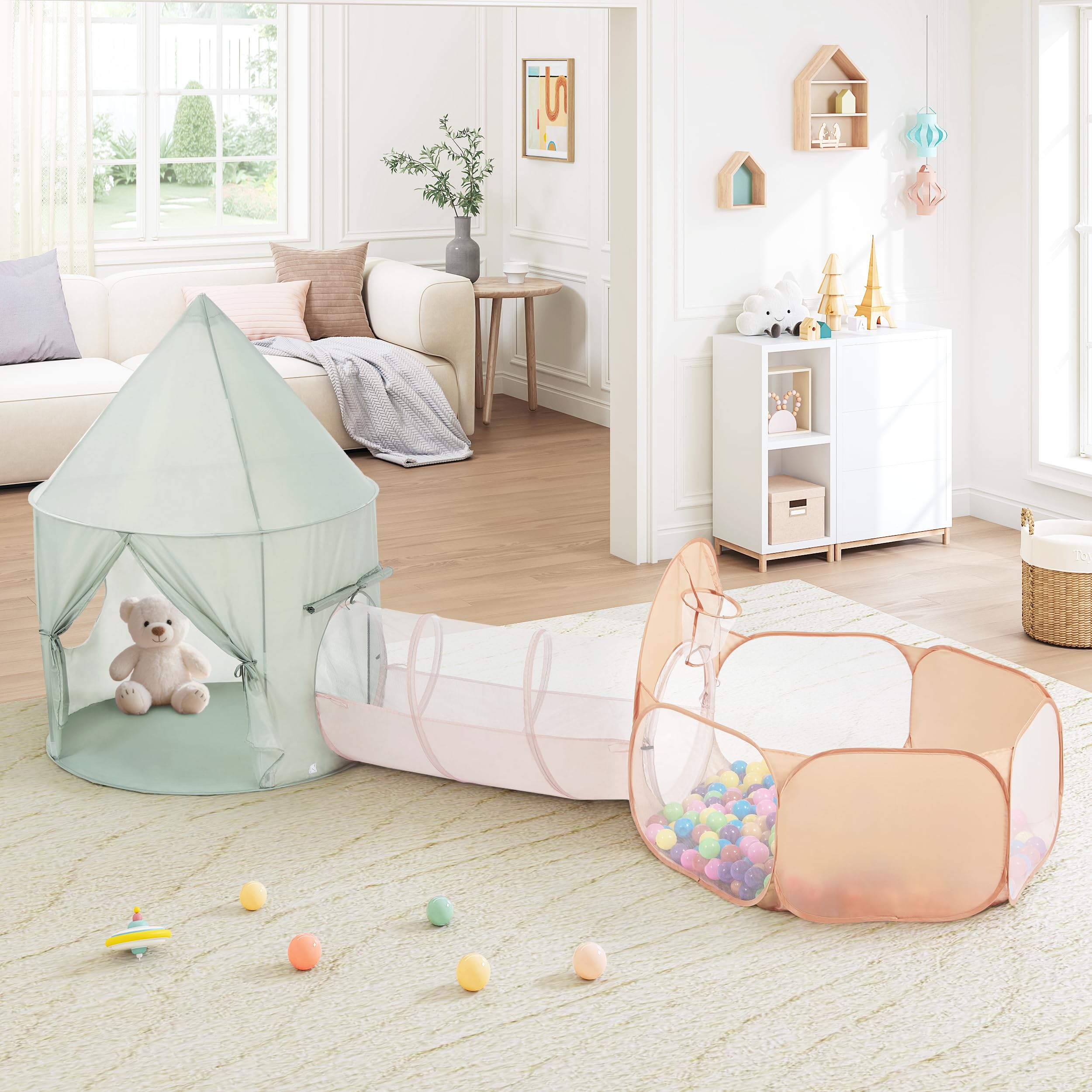 UTEX Tienda de campaña para niños con túnel, tienda de campaña desplegable 3 en 1 con piscina de bolas, túnel de gateo para niños