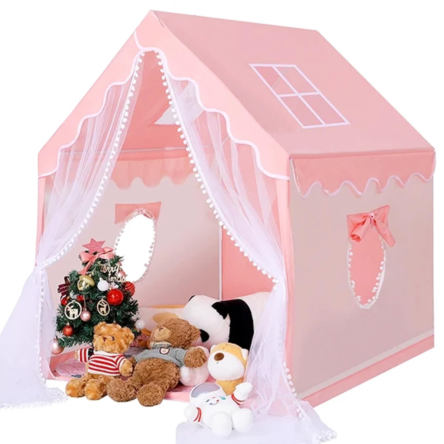 Tienda de campaña de princesa para niñas para interiores y exteriores, casa de juegos rosa espaciosa con ventanas y cortinas de pu