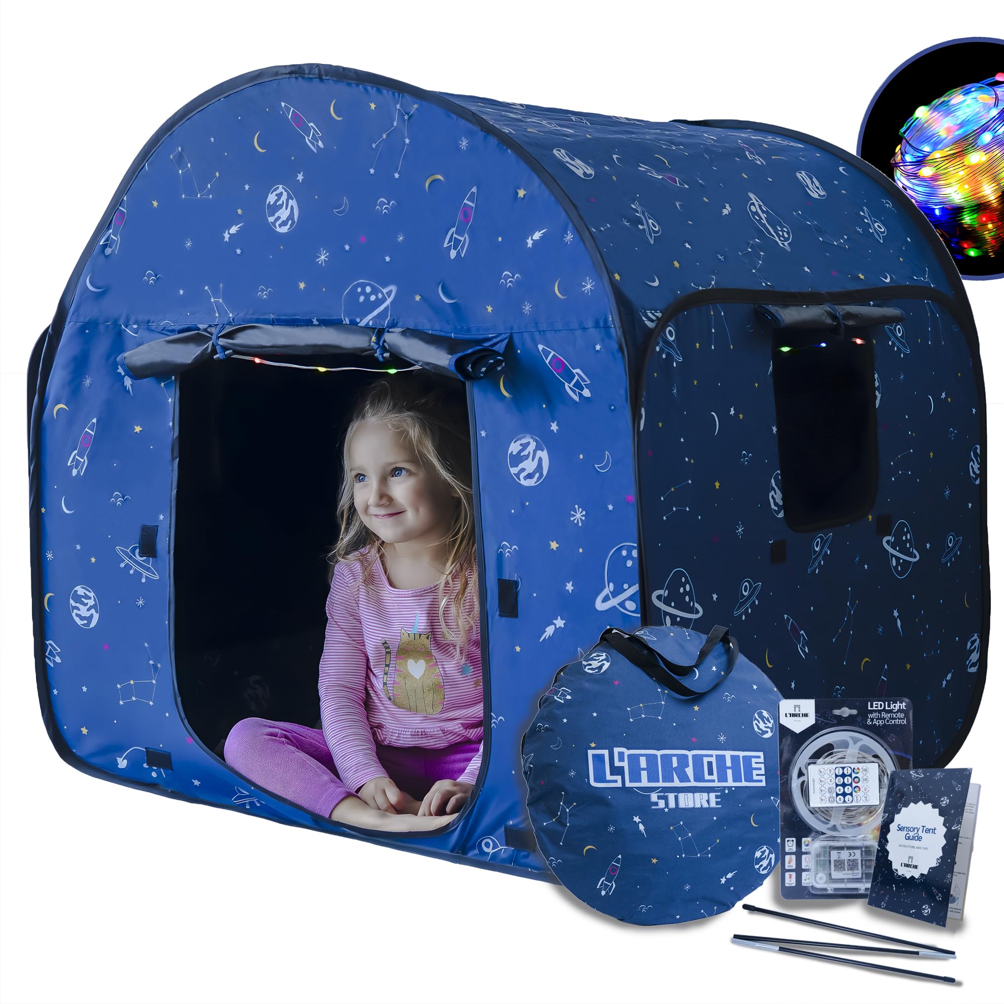 L’Arche Tienda de campaña sensorial para niños con luces LED – Tienda de campaña opaca para autismo, SPD y ansiedad – Espacio de j