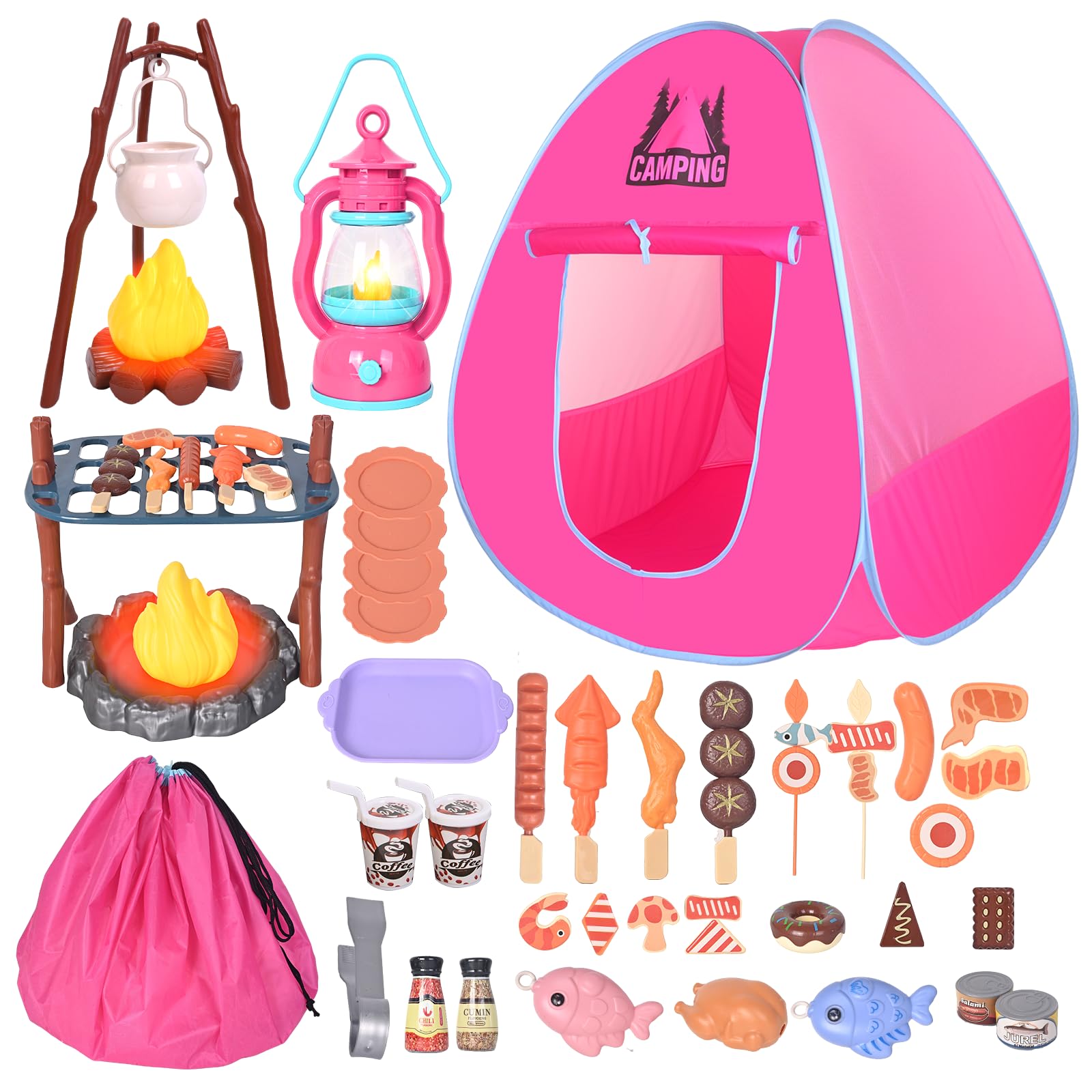 Juego de campamento para niños con tienda de campaña de juegos, fogata, linterna, juego de campamento para interiores y exteriores