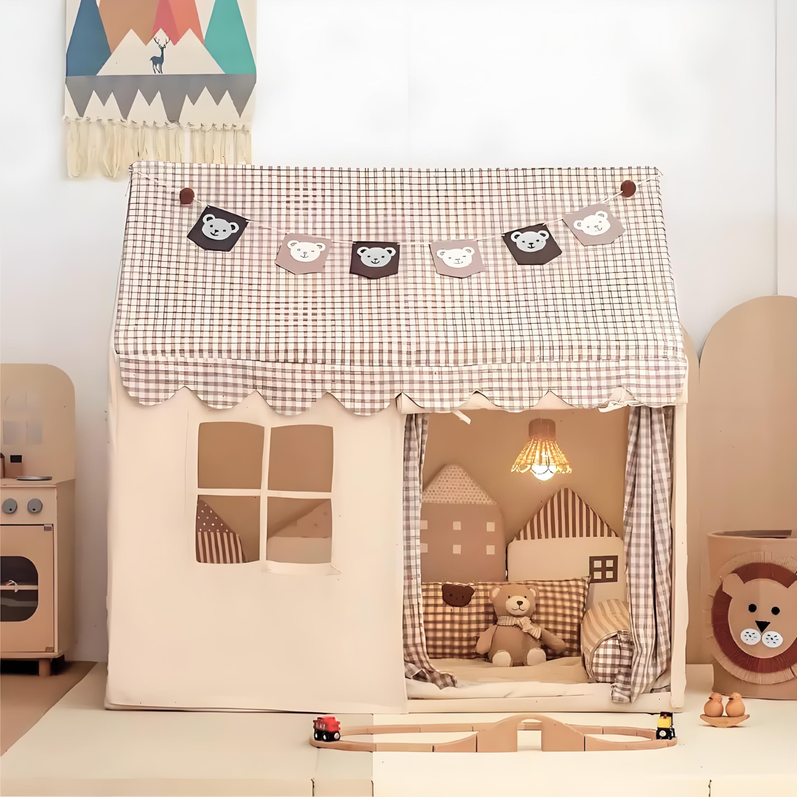 Treestone Play Tent for Kids, 2 in 1 Toddler Tent with Padded Mat and Light, Large Playhouse for Kids Indoor & Outdoor, 2 Doors an