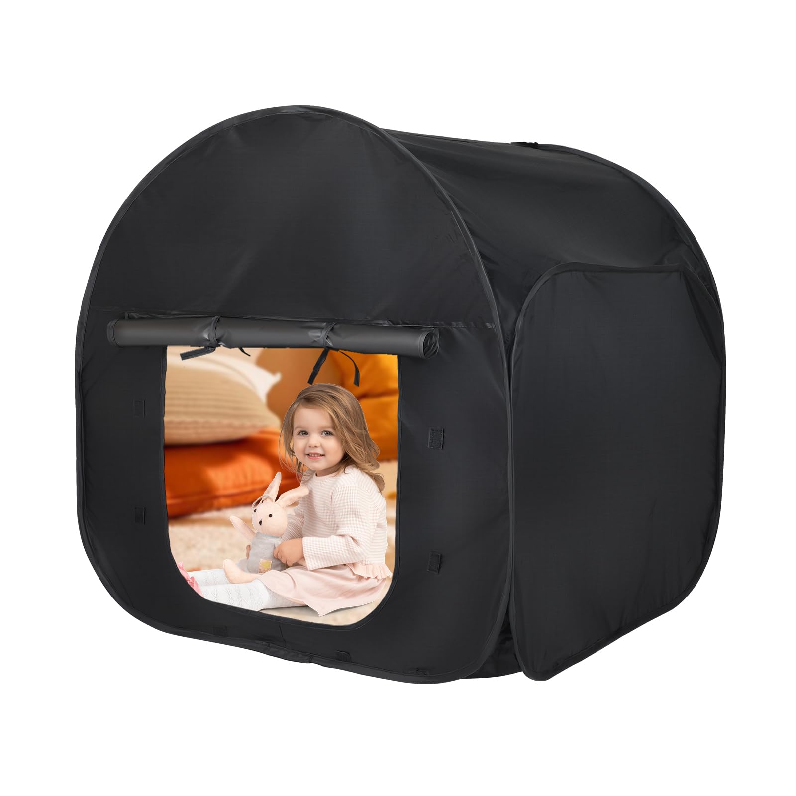 Tienda de campaña sensorial desplegable para niños, extra grande de 47 x 47 pulgadas, calmante, tienda de campaña negra para autis