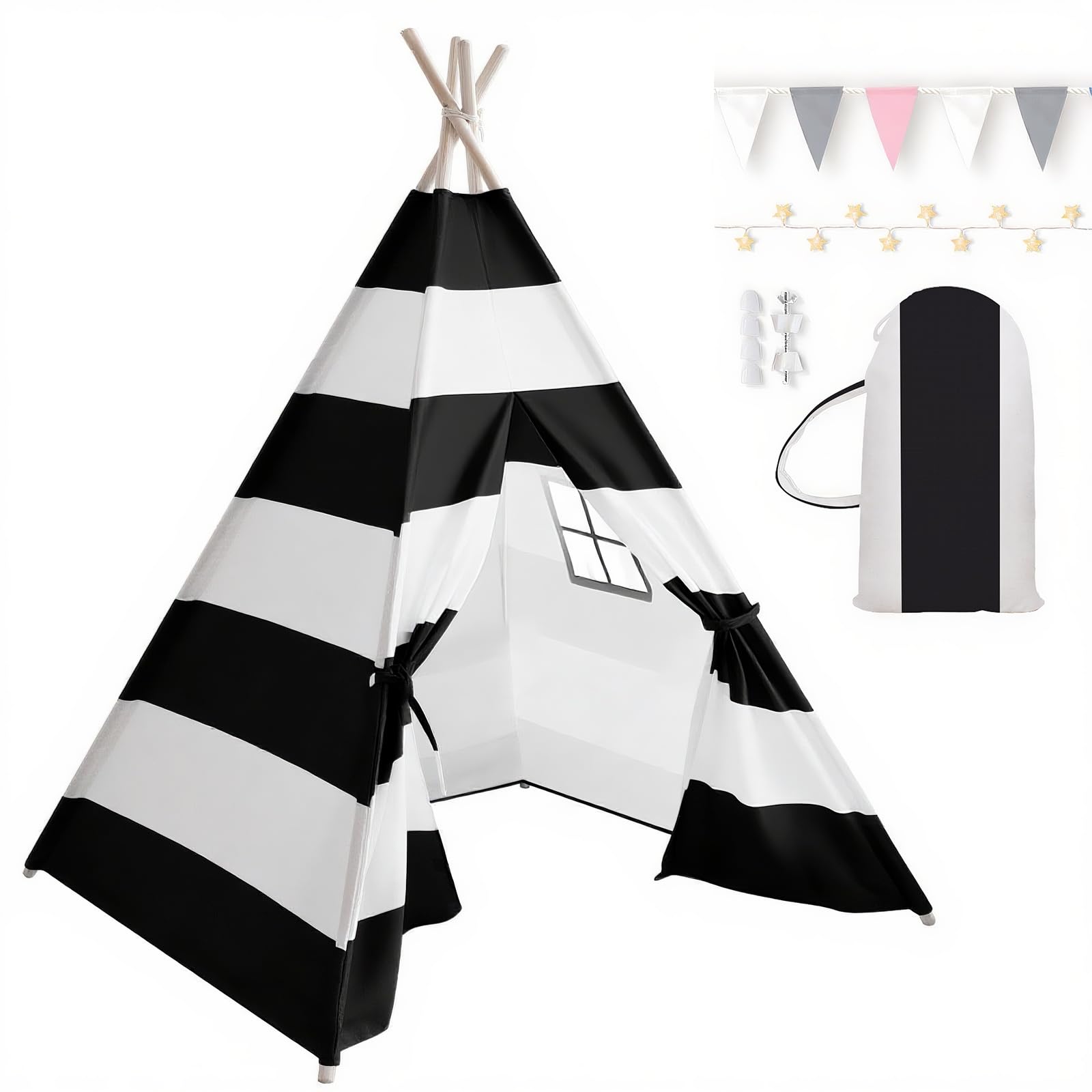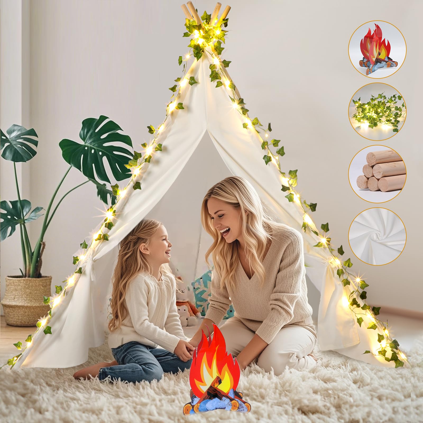 Tienda de campaña tipo tipi para niños con luces y bolsa de transporte, casa de juegos lavable para uso en interiores, tienda de c