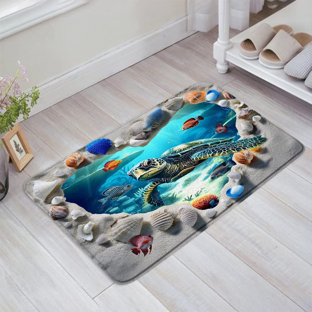 Alfombra de baño con diseño de tortuga marina, concha de playa bajo el agua, peces tropicales, verano, espuma viscoelástica, baño,