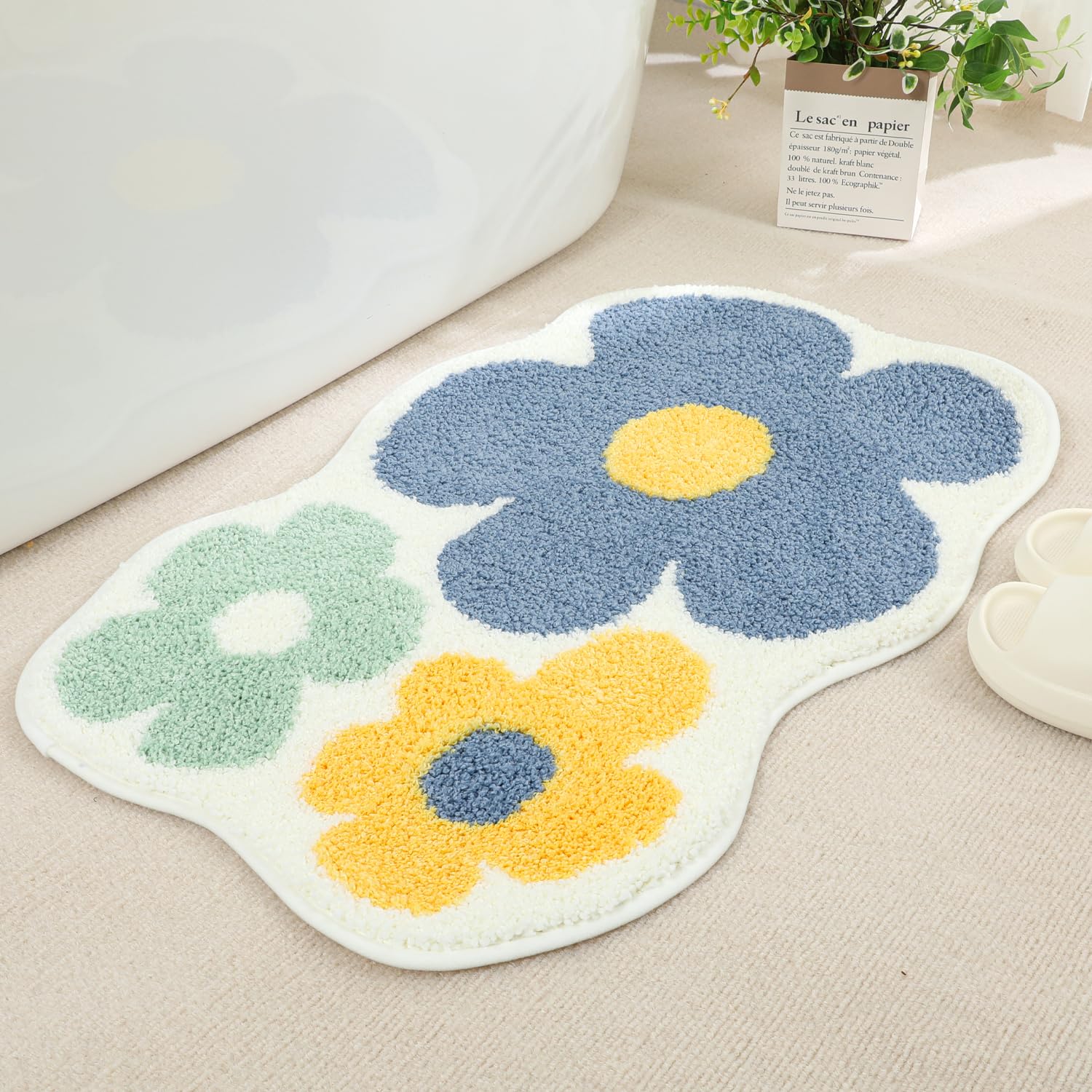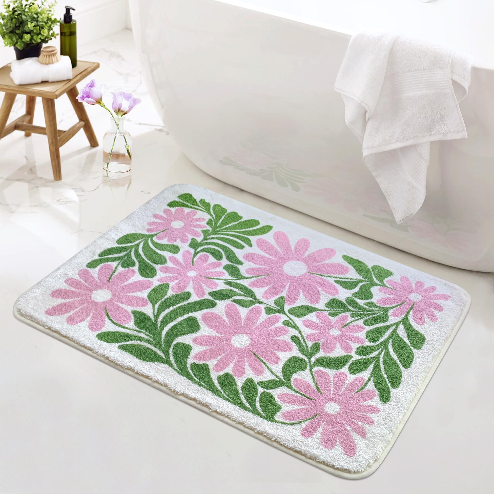 Alfombra de baño para baño, súper suave, esponjosa, alfombra para el hogar, alfombra floral, absorción de agua, lavable a máquina,
