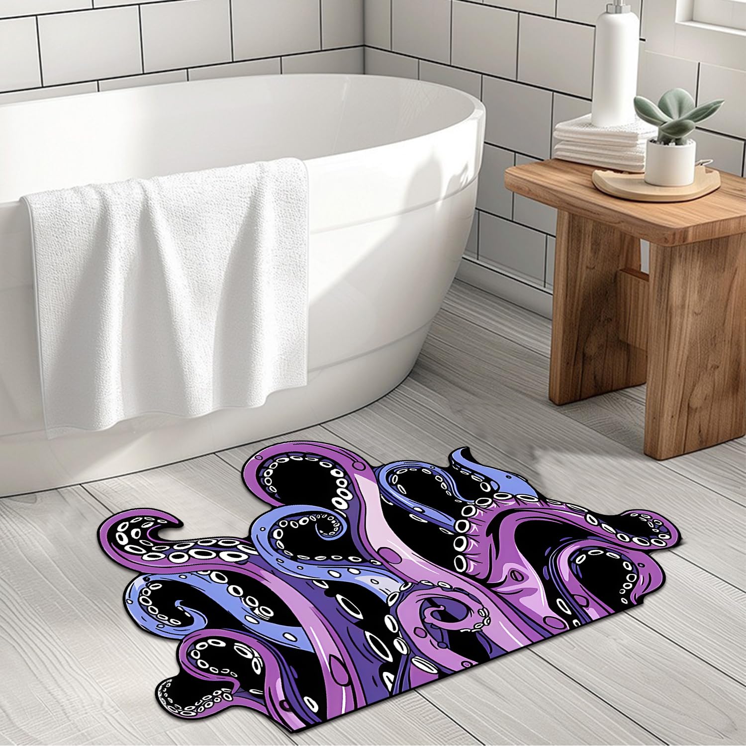 Tapete de baño con diseño gótico de pulpo, de animales, divertidos, antideslizantes, para decoración de bañera, súper absorbente,