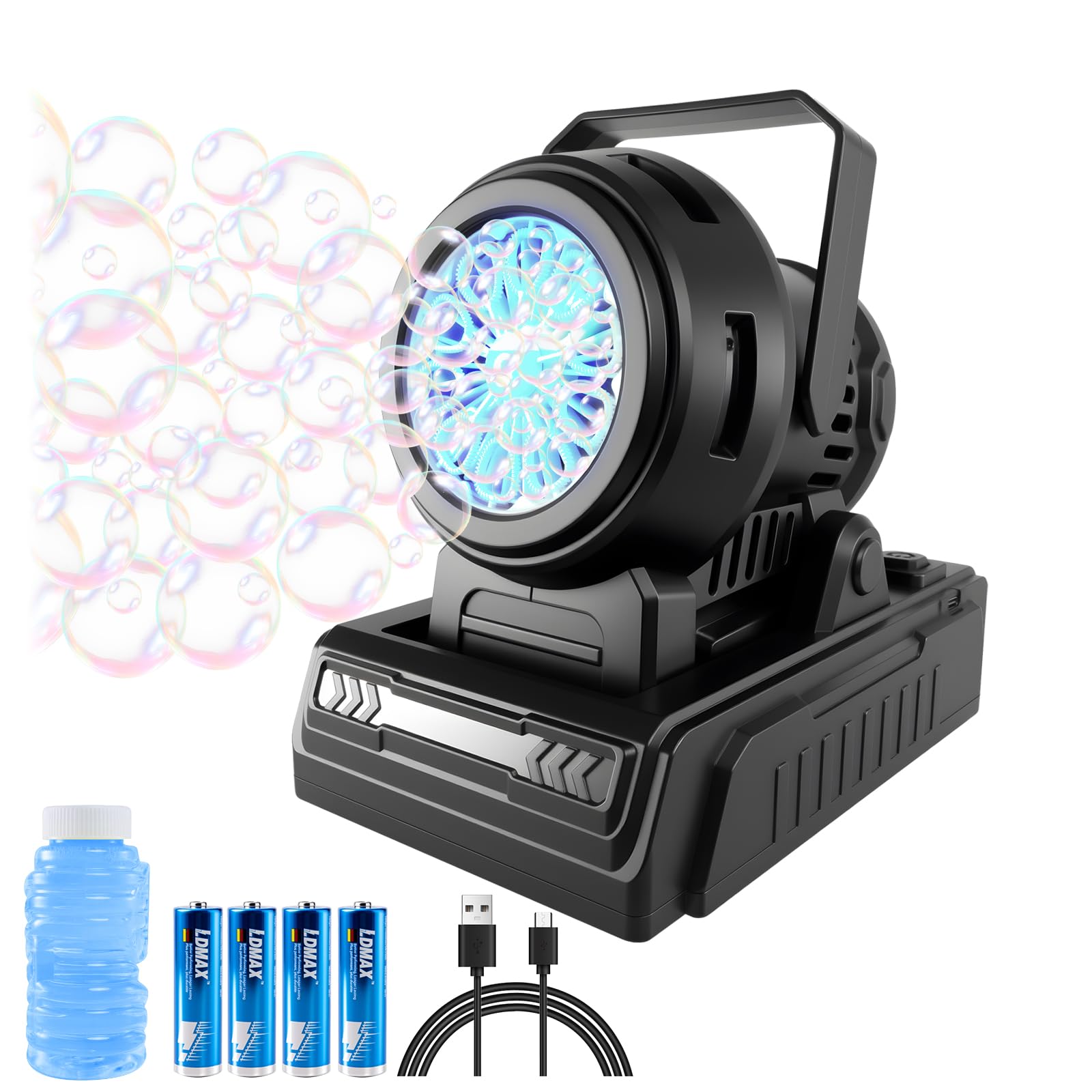 Máquina de burbujas recargable para niños, rotación de 180°, más de 10,000 burbujas grandes por minuto, regalo de cumpleaños para