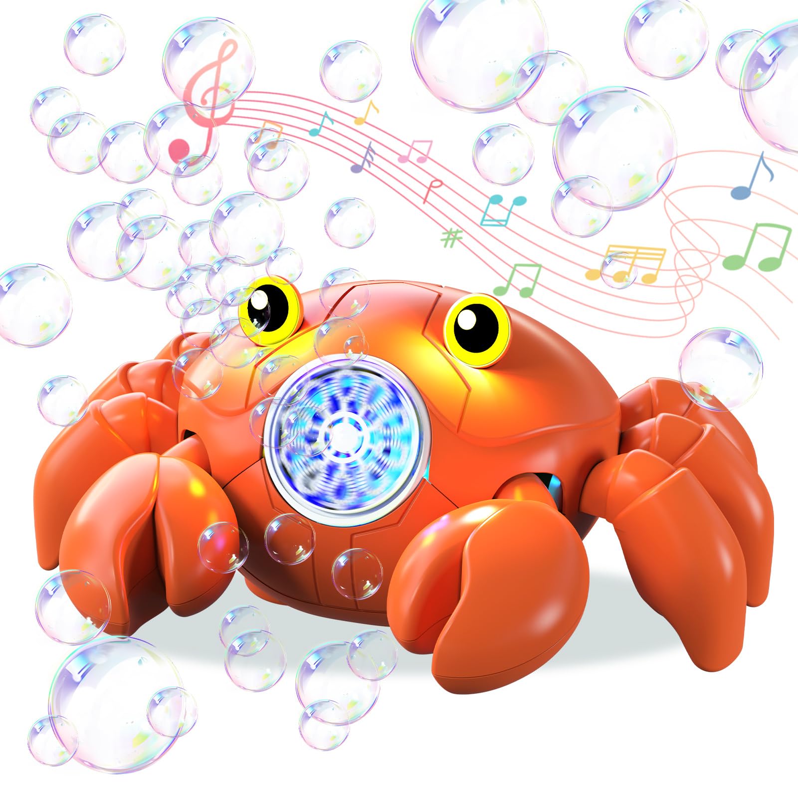 Máquina de burbujas recargable, movimiento de 360°, máquina sopladora automática de burbujas de cangrejo con música y LED, más de