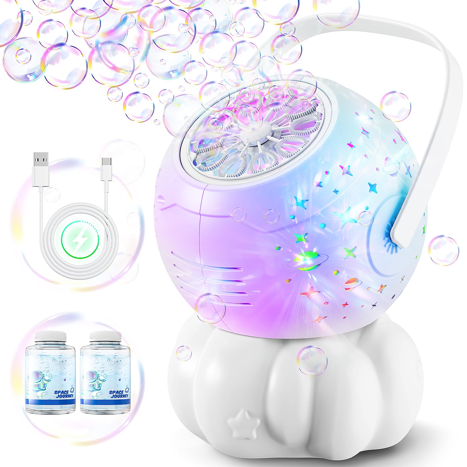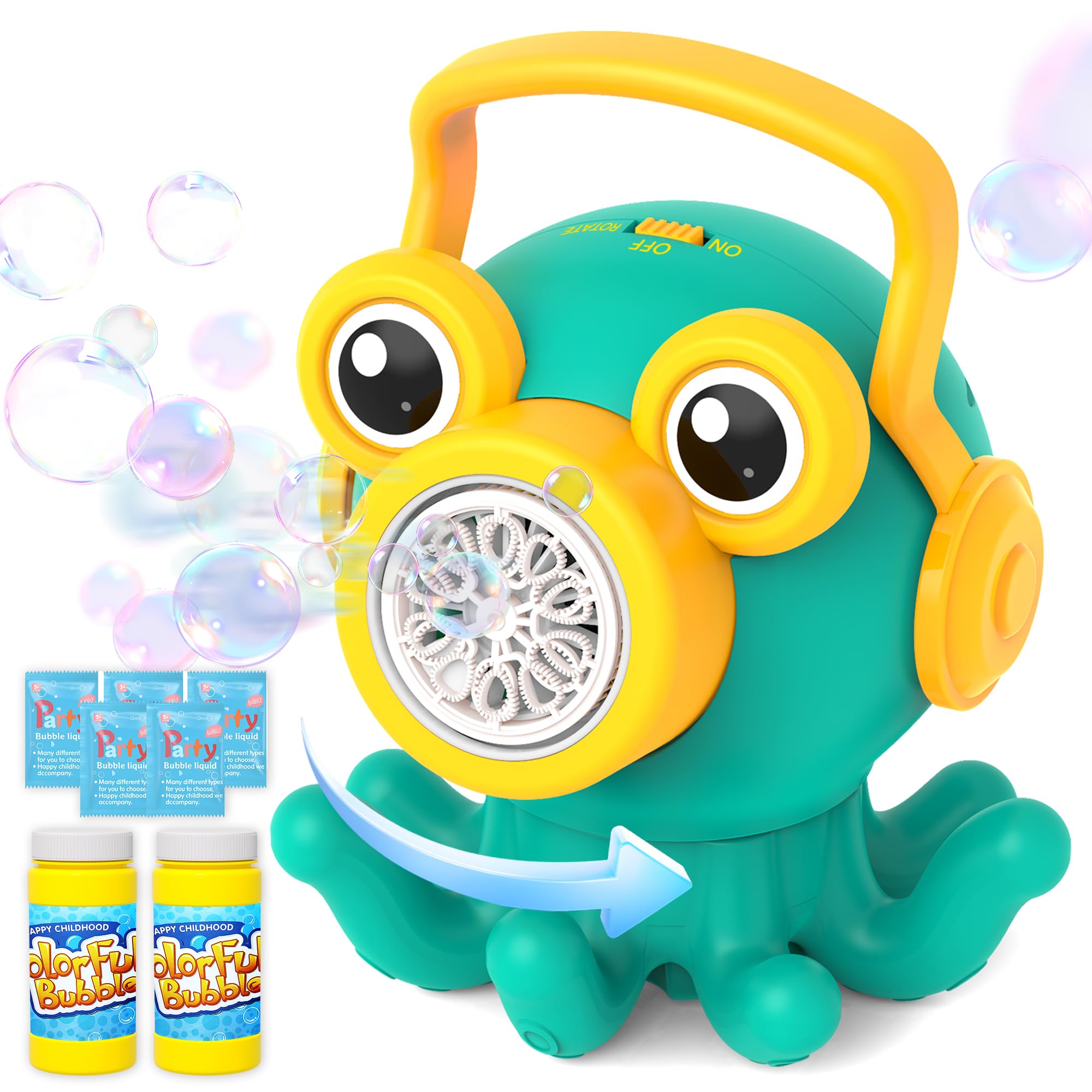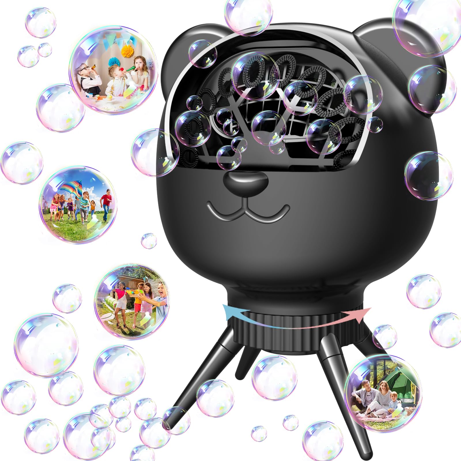 Máquina de burbujas mejorada para niños y fiestas: 16.9 fl oz, 38,000 burbujas por minuto, rotación automática de 90°/180°, máquin