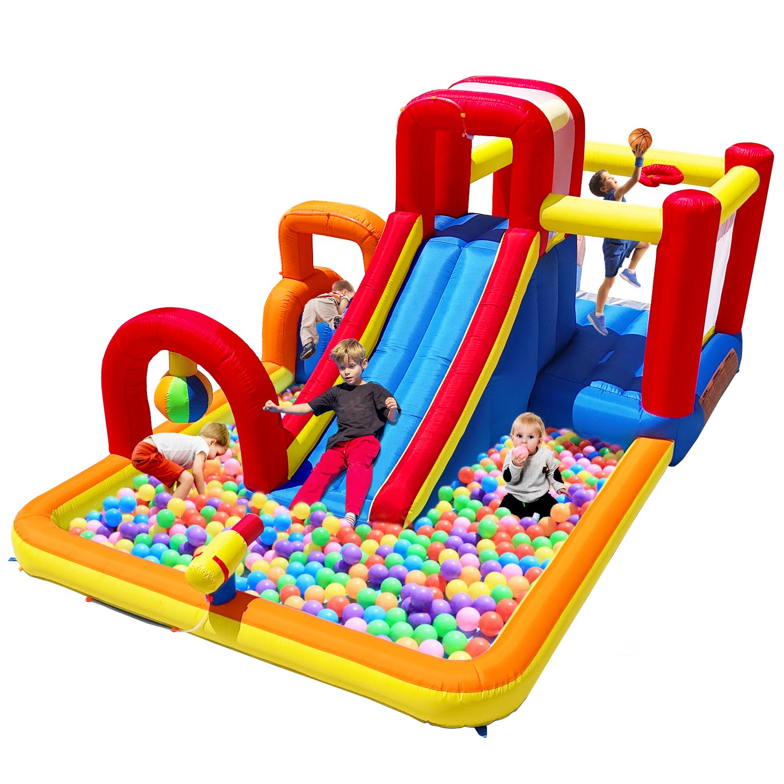 Casa inflable de rebote con soplador, tobogán de castillo de salto, gorila para niños con hoyo de bolas, borde de baloncesto, jueg