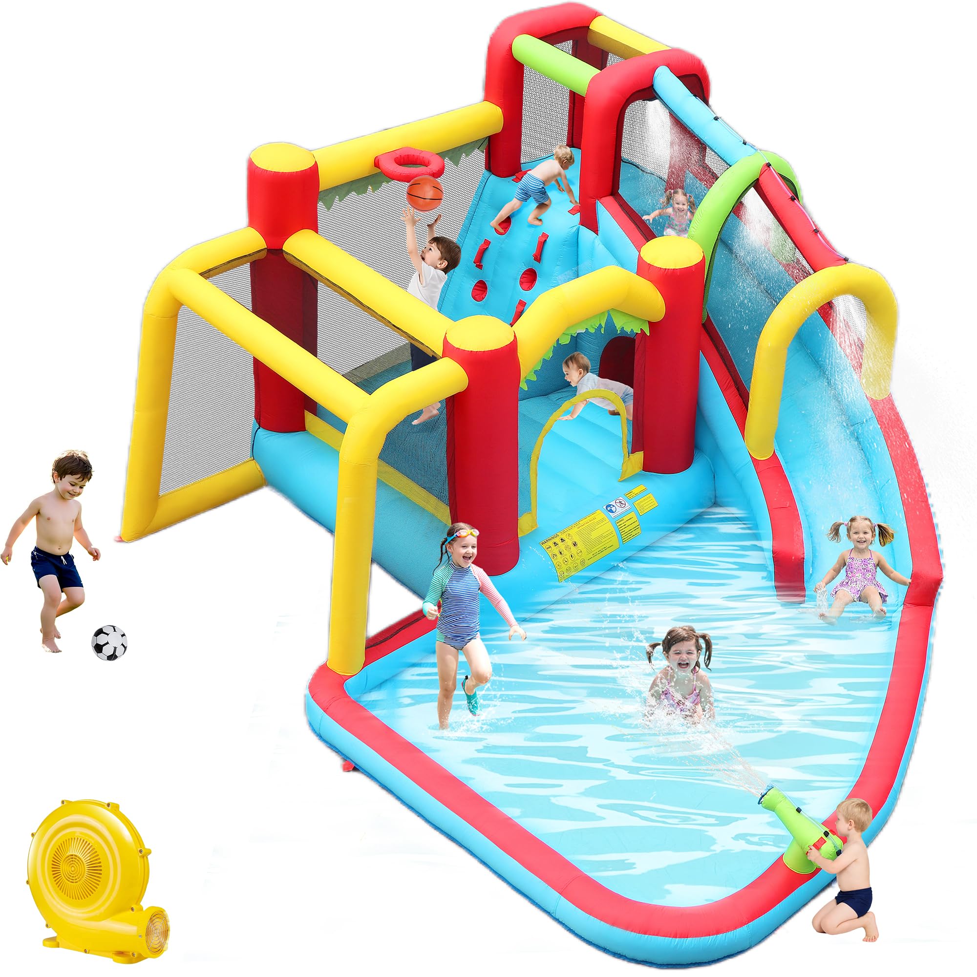 HuaKastro Casa de rebote grande para niños grandes – Parque inflable con tobogán alto, pared de escalada, piscina de agua, pozo de