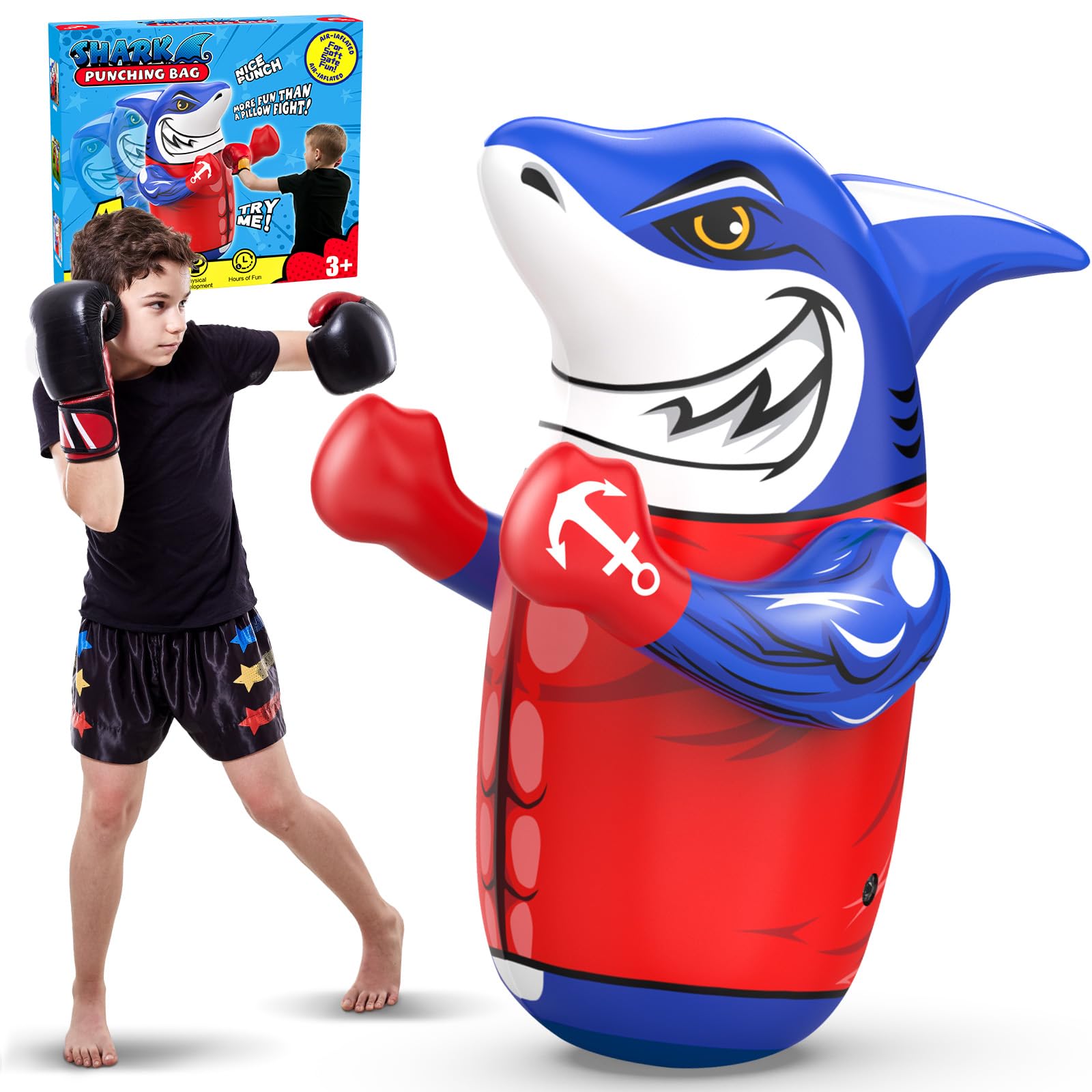 Saco de boxeo inflable de tiburón actualizado 2025 para niños, juguetes de tiburón de 47 pulgadas para niños, juguetes duraderos d