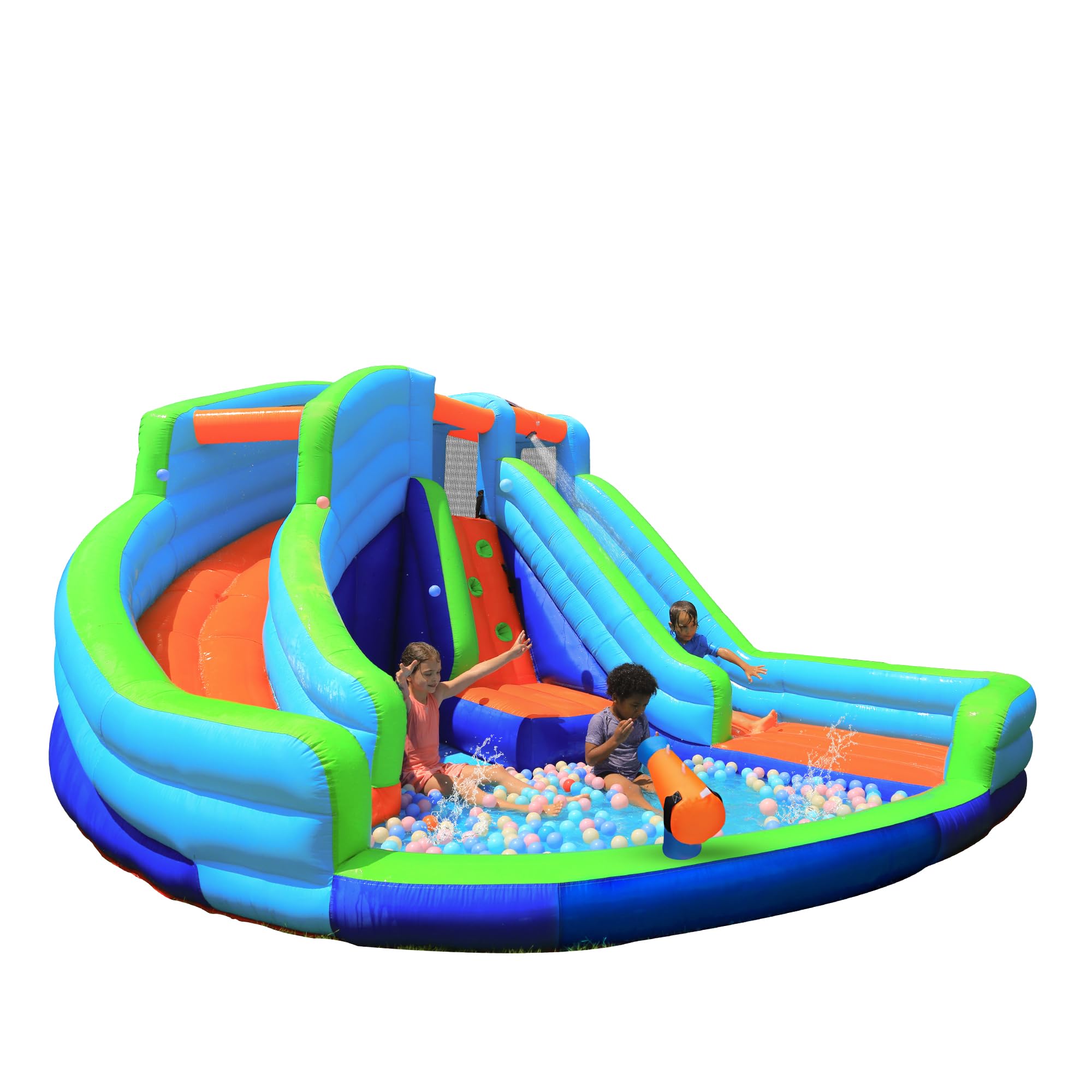Bounce House – Tobogán acuático inflable para niños con pozo de bolas, 2 toboganes de agua, castillo, parque acuático con soplador