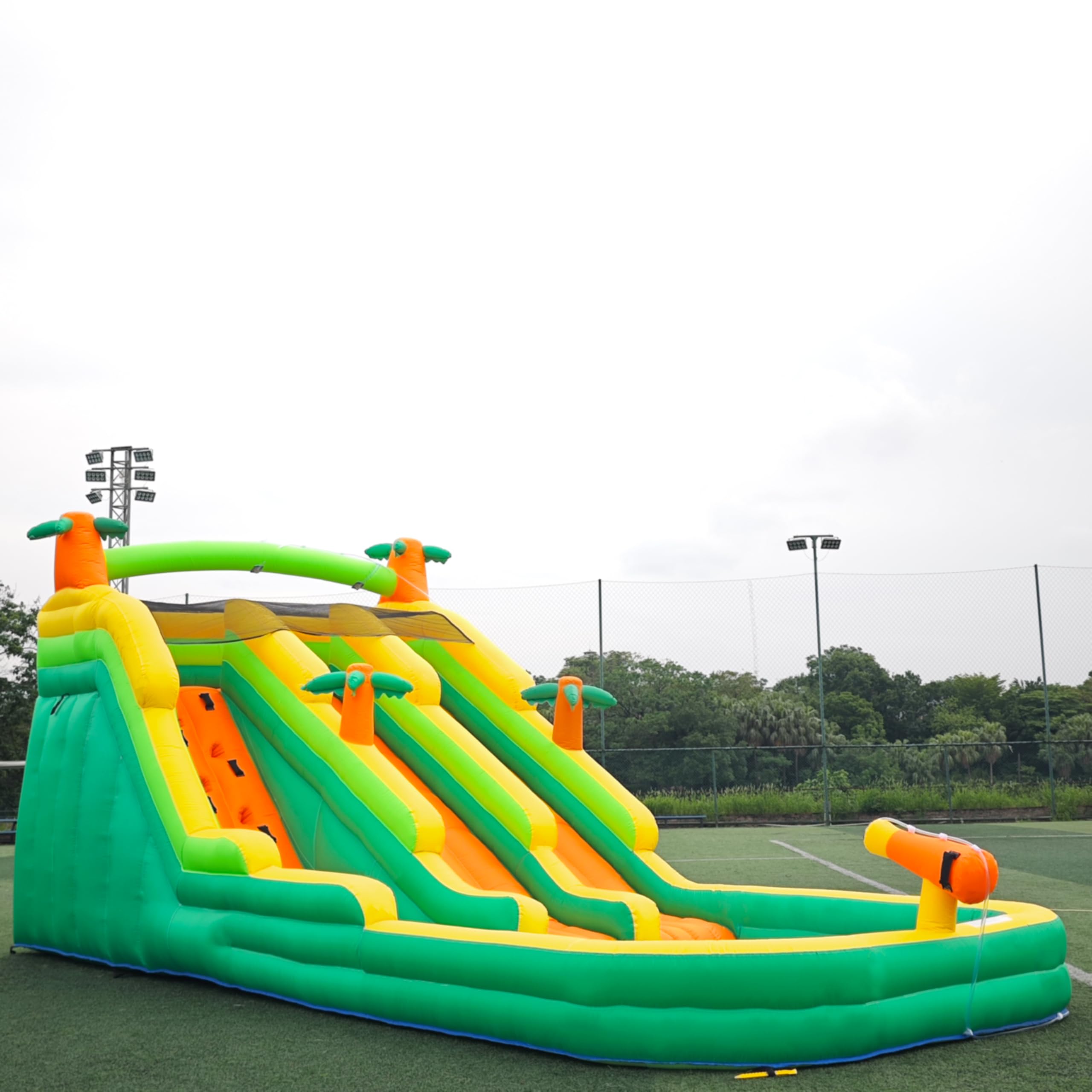 Tobogán acuático inflable grande de 20 pies Oxford para niños y adultos, tobogán acuático estilo bosque lluvioso, casa de rebote y