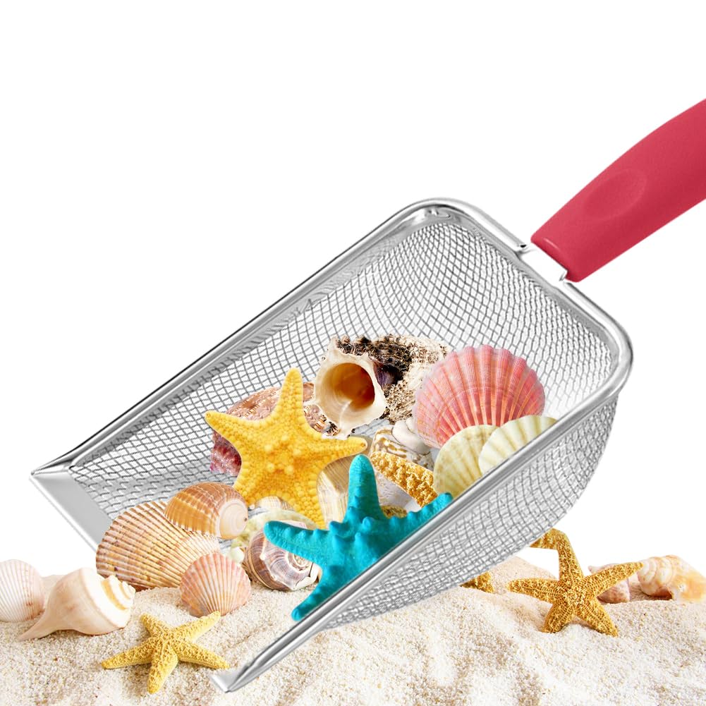 Pala de malla de playa, tamiz de diente de tiburón para recolección de conchas, filtro de arena para niños para recoger conchas, j
