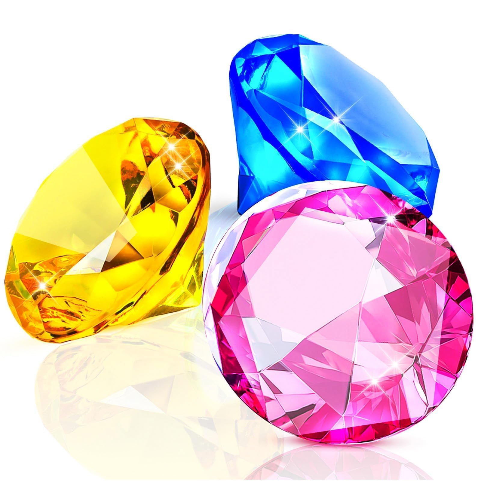 MARFOREVER Juguetes de piscina de gemas de buceo extra grandes de 2.32 pulgadas, gemas de tesoro pirata de diamantes acrílicos ext