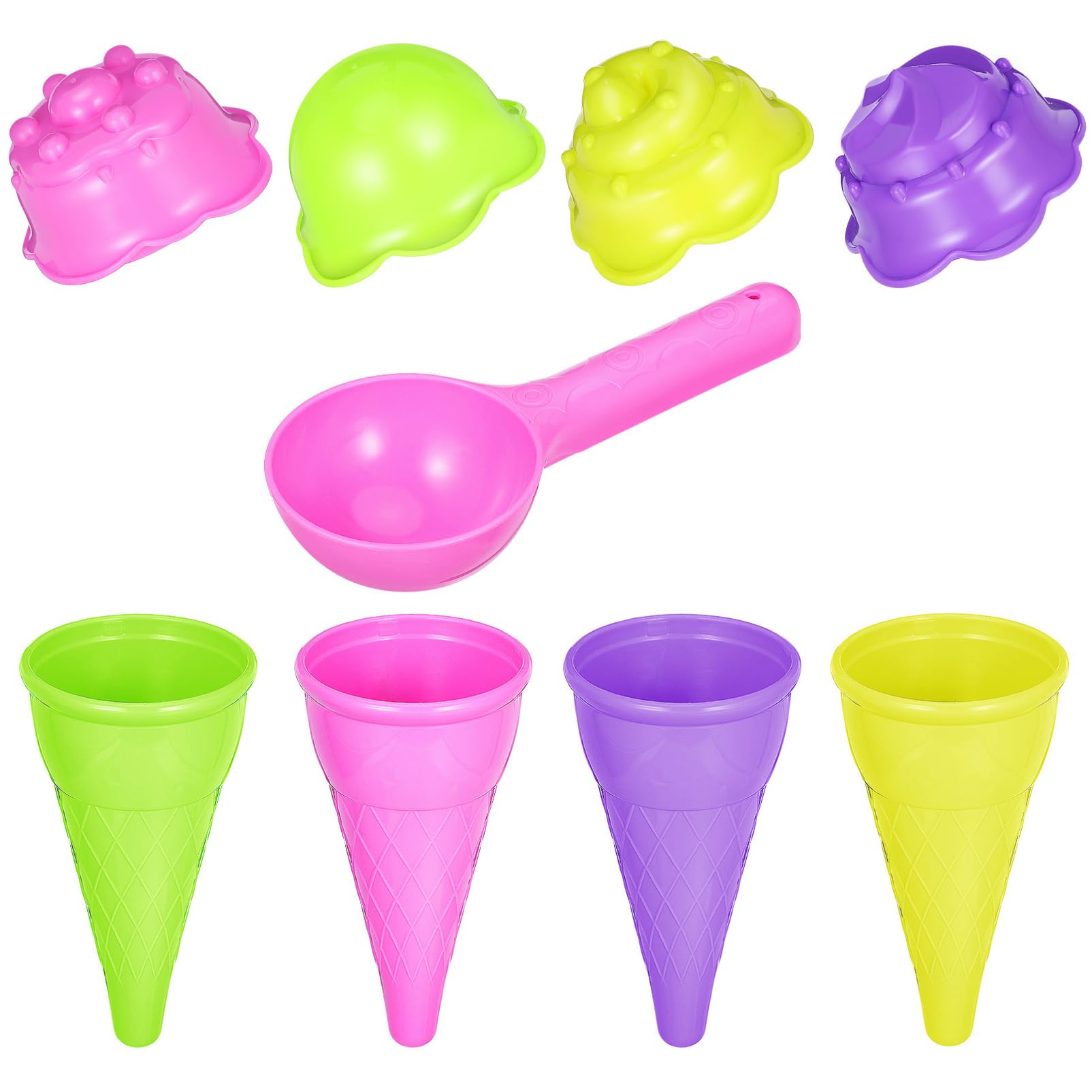 Toyvian Conos de helado de plástico: Childern Sand Scoop Summer Beach Toy Set, Conos de plástico junto al mar juguete al aire libr