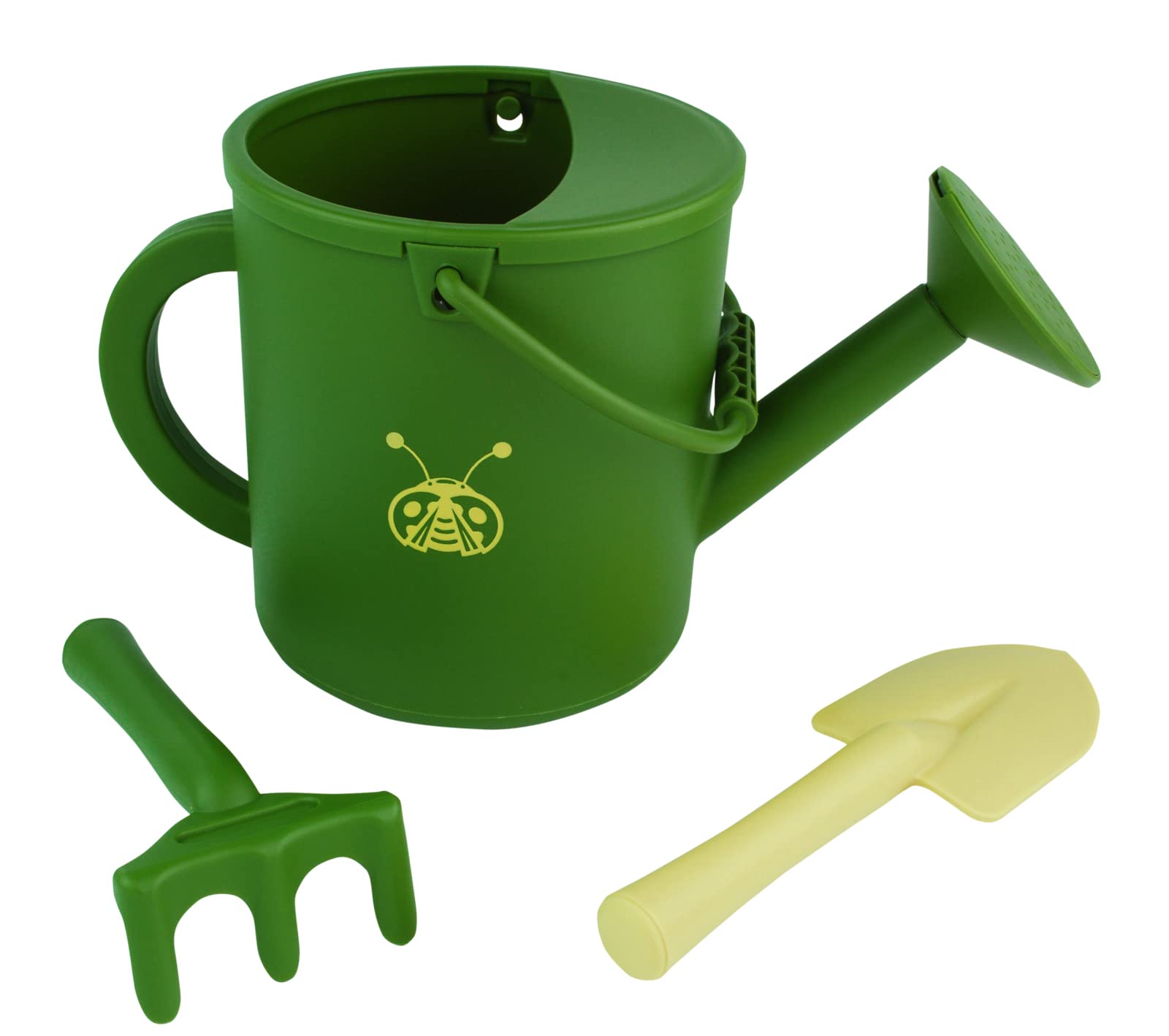 Juego de herramientas de jardinería para niños, juego de juguetes de playa de color aguacate/verde, incluyendo regadera, pala y ra