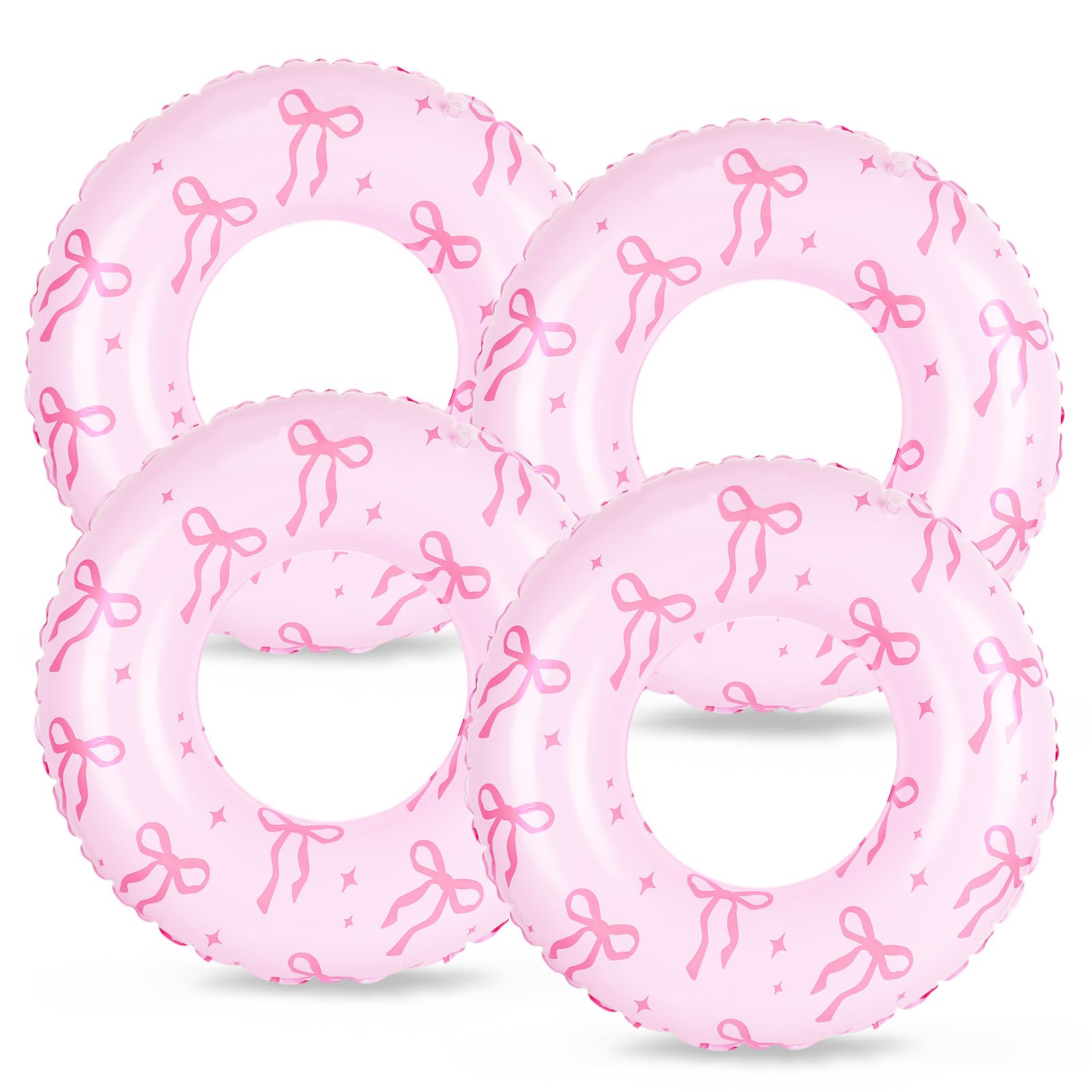 4 unidades de flotadores inflables de lazo rosa para piscina, lindo lazo, tubos de natación, coqueta, anillos de natación para ver