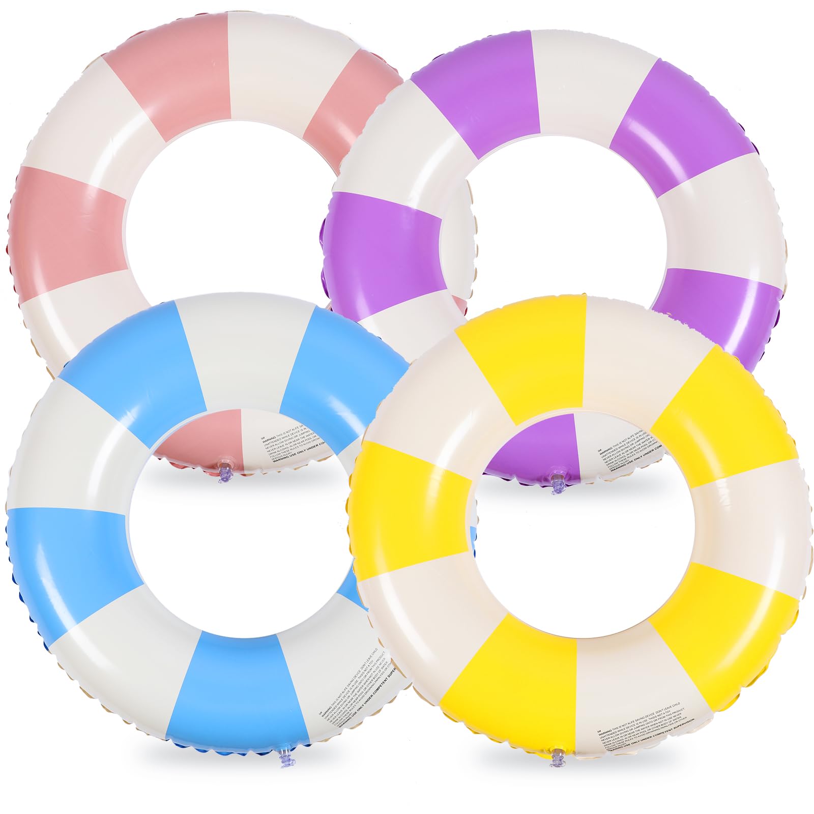 Wettarn 4 tubos de piscina con estampados divertidos, flotadores inflables para natación, tubos interiores clásicos a rayas para p