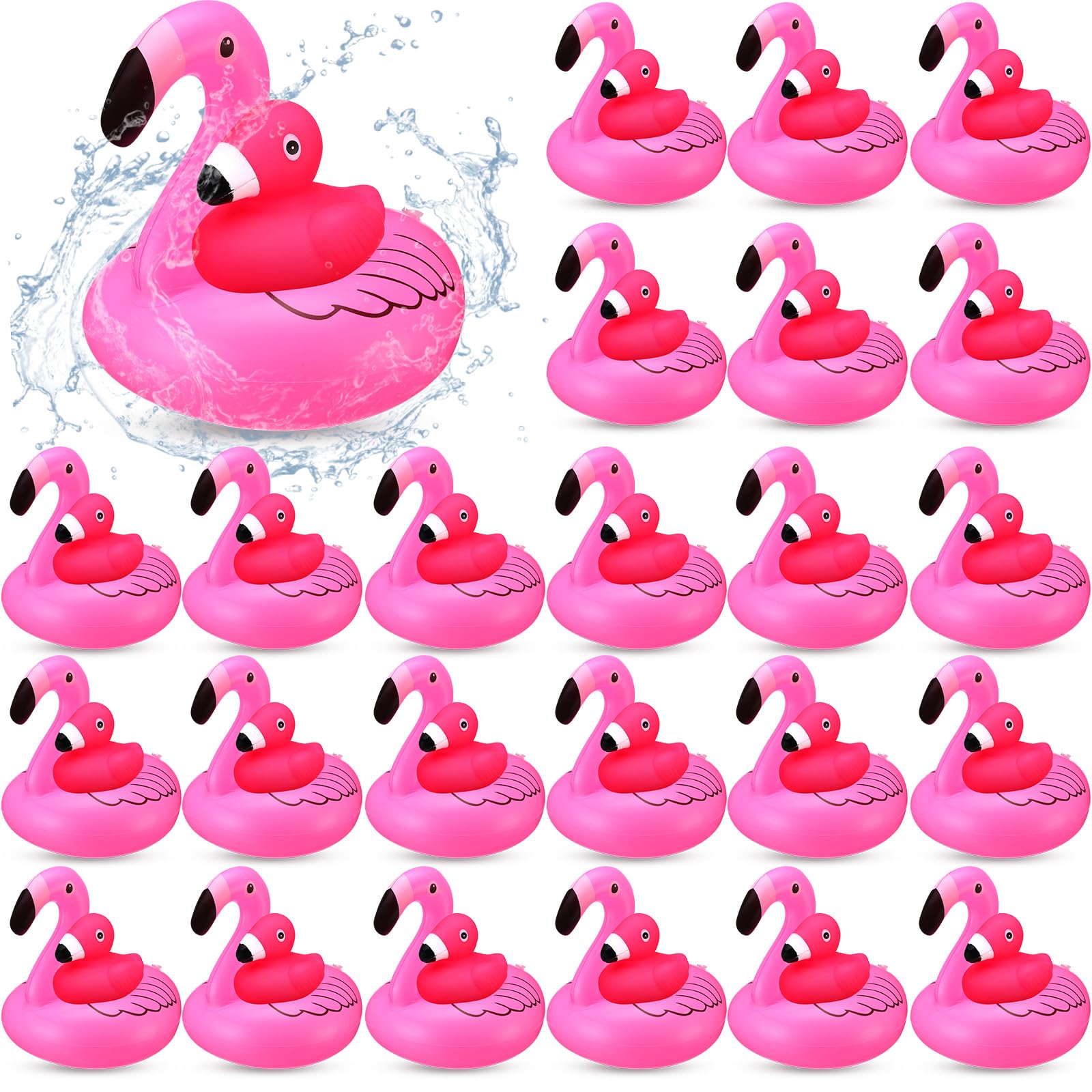 Jerify Juego de 12 patos de flamenco de goma con anillo de natación, juguetes flotantes de flamenco rosa, decoración de tablero de