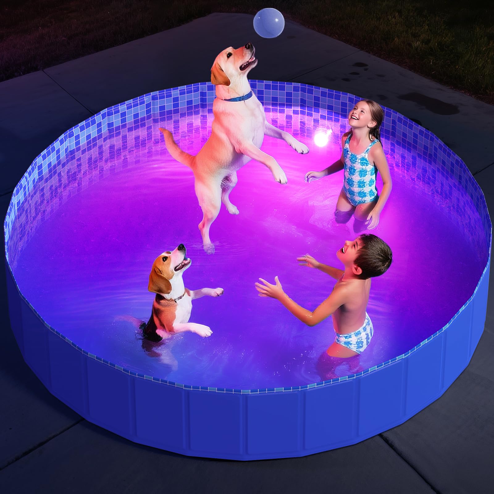 Piscina plegable para perros con luz, piscina plegable de plástico duro para perros pequeños, medianos y grandes, bañera de baño p