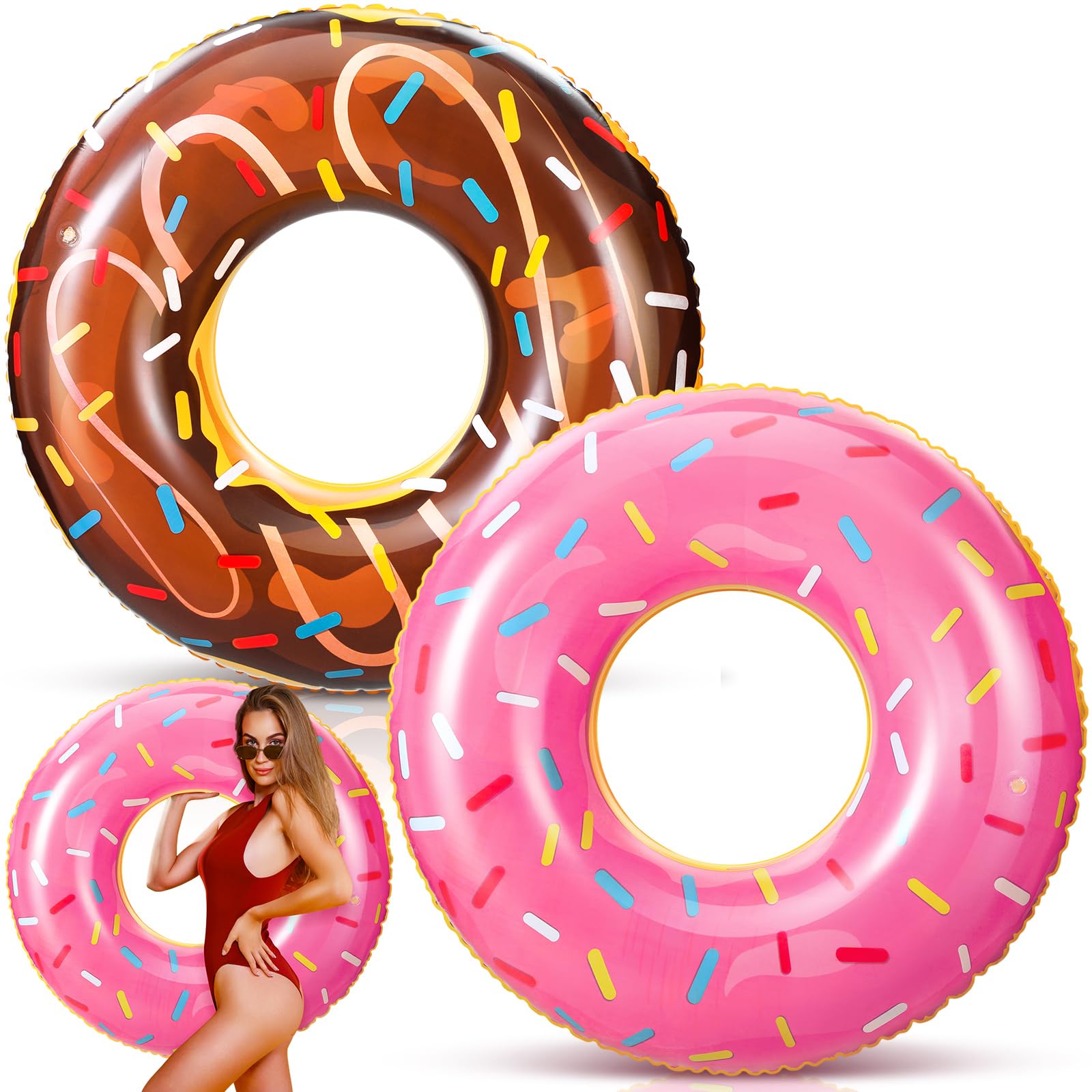 Paquete de 2 flotadores grandes de 47.24 pulgadas para adultos con forma de dona inflable para adultos, flotadores inflables para
