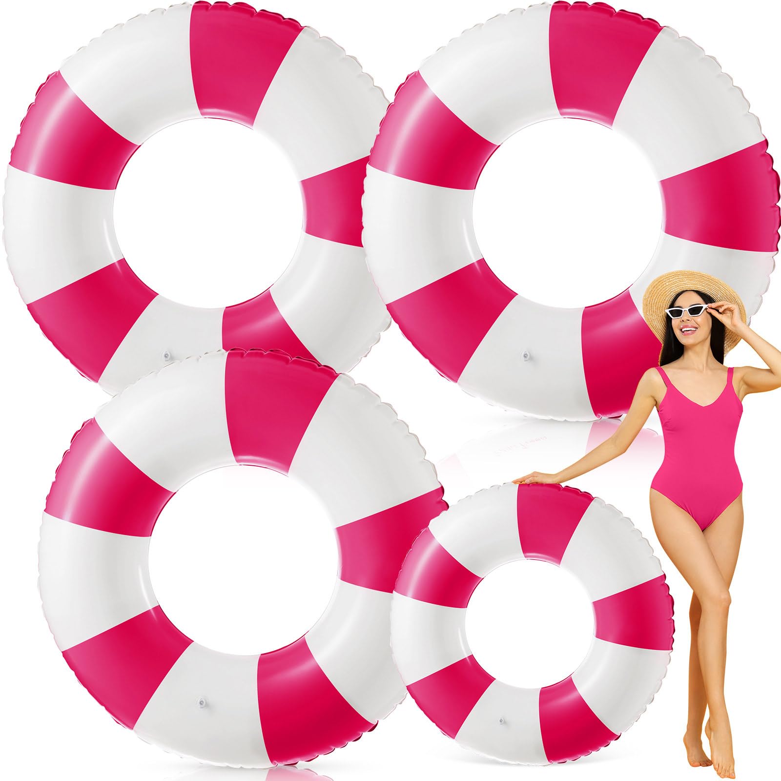 Flotadores inflables de piscina de 47.24 pulgadas, anillo de natación a rayas, para adultos, natación, verano, playa, despedida de
