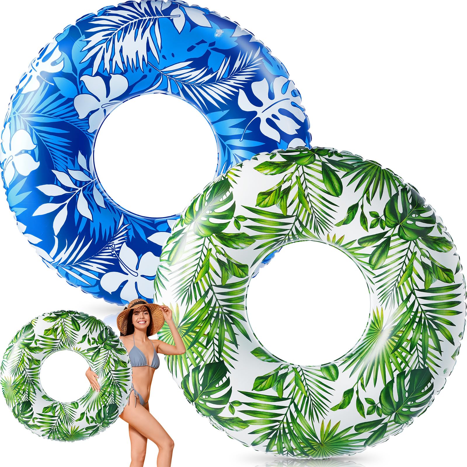 2 piezas de tubo flotador grande de 47.24 pulgadas, flotadores inflables de piscina con hojas tropicales jumbo, tubo inflable, ani