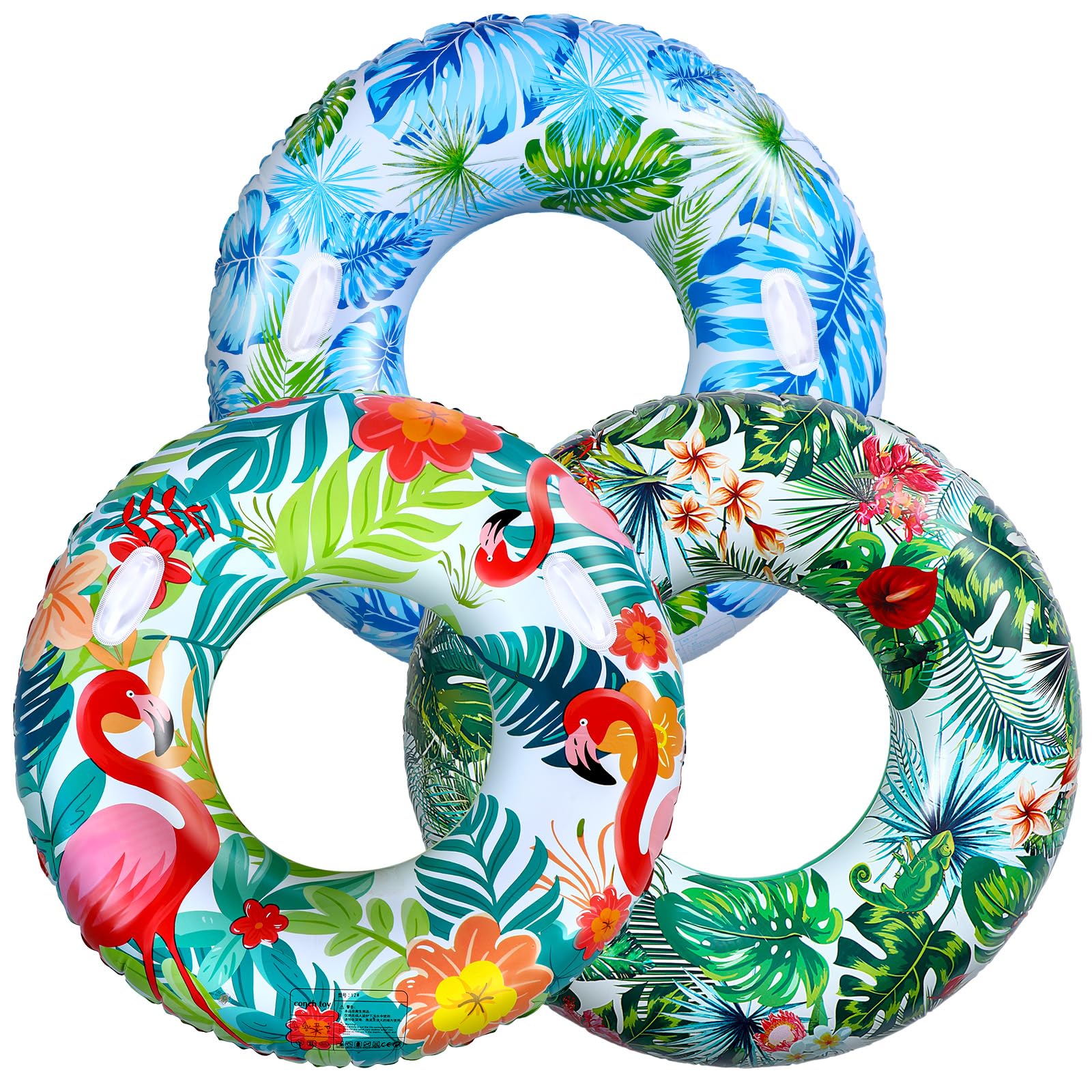 3 piezas de flotador inflable jumbo para piscina de 47 pulgadas, flamenco hawaiano, hojas de palma, flotadores inflables para pisc