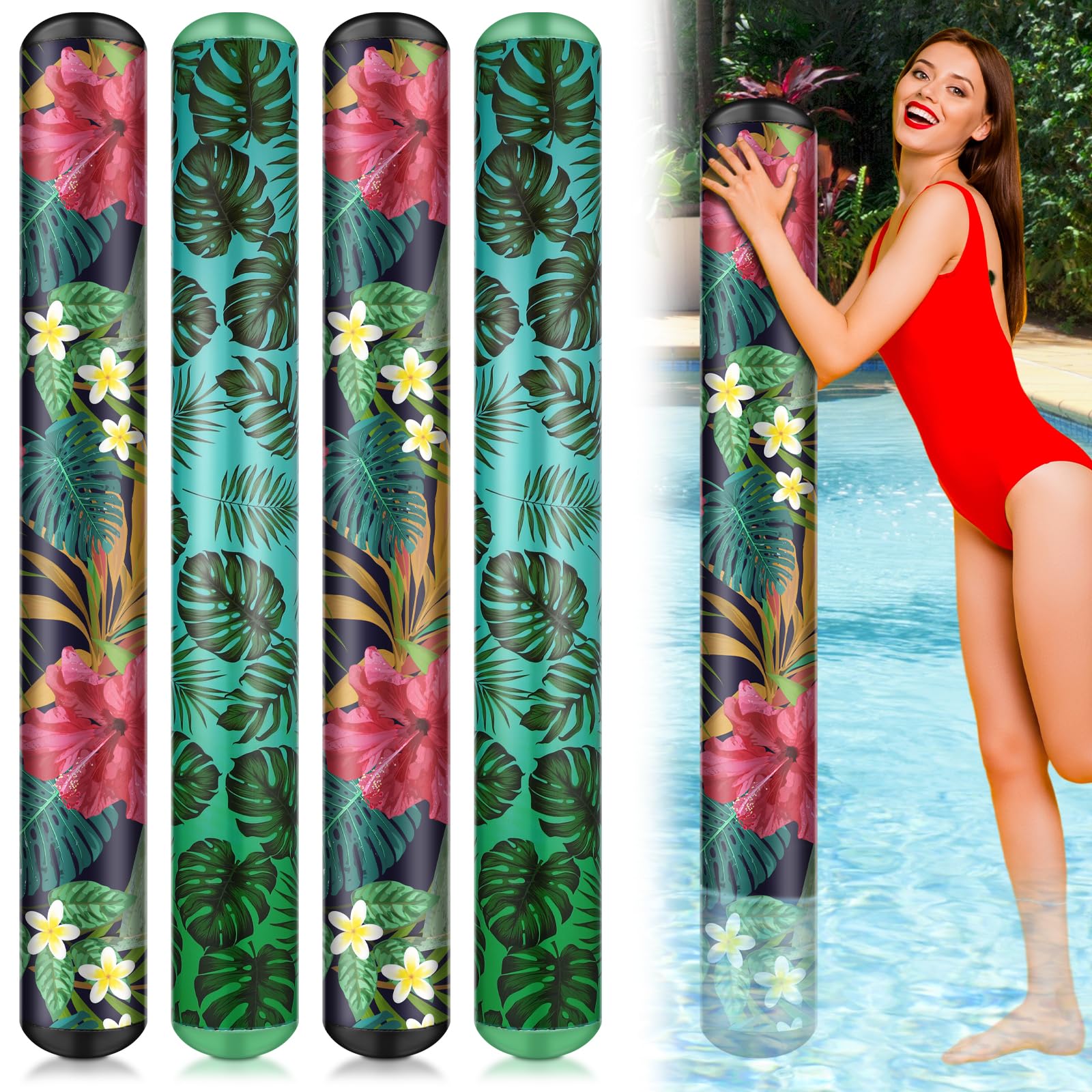 Karenhi 4 fideos inflables de piscina de 50 pulgadas, fideos de piscina gigantes, flotadores inflables tropicales hawaianos para a