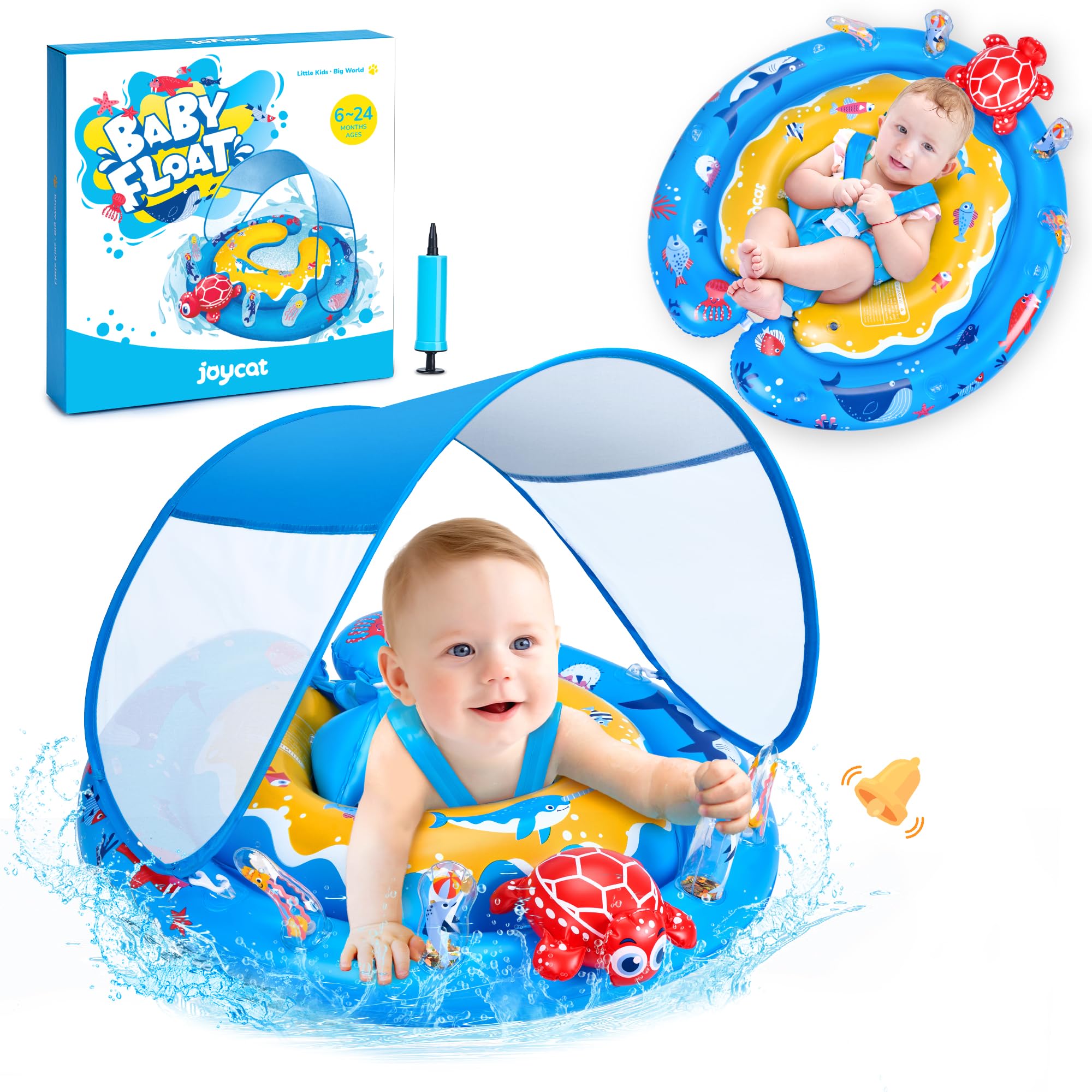 JOYCAT Flotador de piscina para bebé con dosel, flotadores inflables convertibles para piscina con asiento de seguridad ajustable,