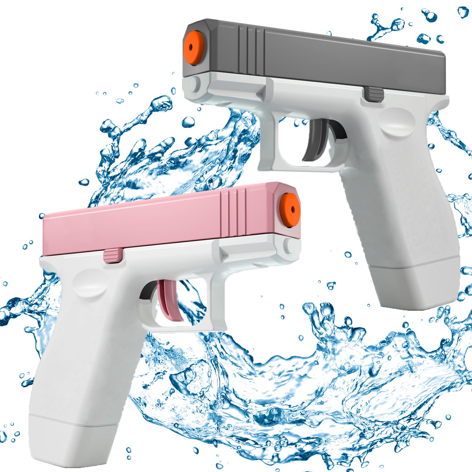 Pistola de agua eléctrica con flash de bozal para adultos y niños, pistola de chorro automática con 2 tanques de agua, pistola de