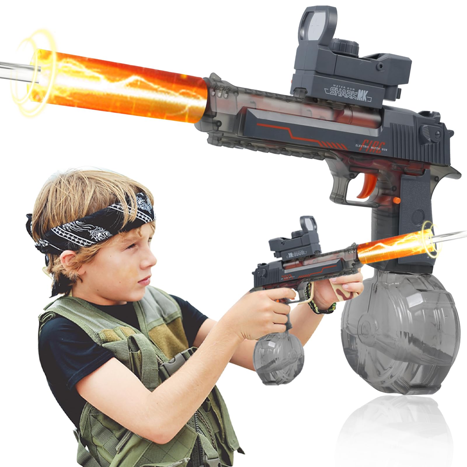 Pistolas de agua eléctricas para adultos y niños, pistola automática de chorro de agua de alta potencia con llama de bozal de pist