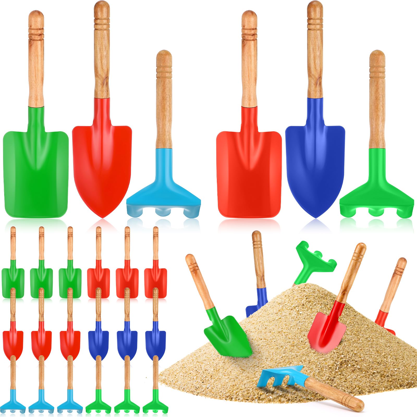 Gisafai Juego de 24 herramientas de jardinería para niños, herramientas de jardín de metal para niños con mango de madera resisten