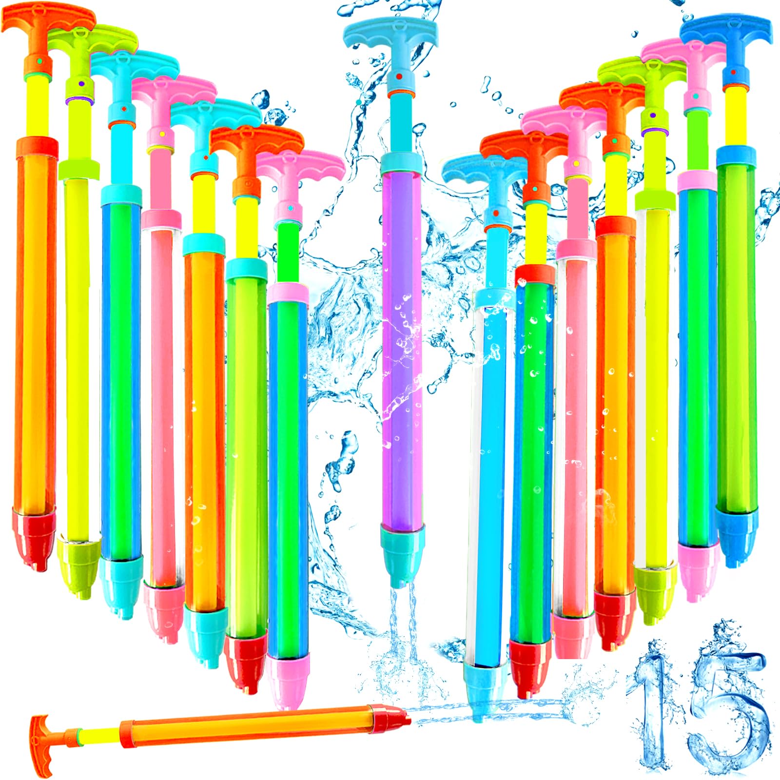15 pistolas de chorro de agua, disparar hasta 35 pies, pistola de pulverización de agua de 16.5 pulgadas para niños, adultos, luch