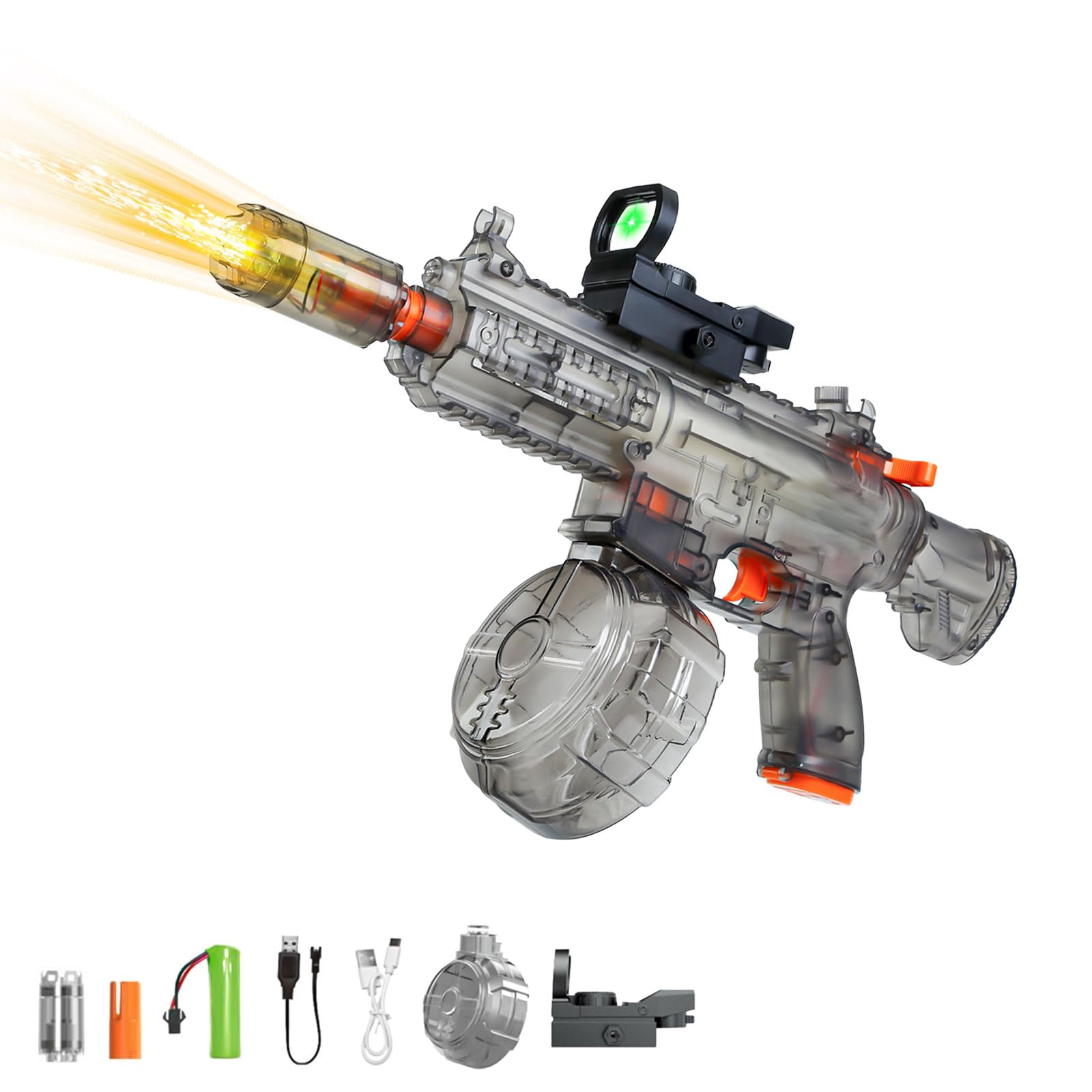 Pistola de agua súper eléctrica para adultos y niños con efecto de flash de bozal y retroceso, potentes pistolas automáticas de al