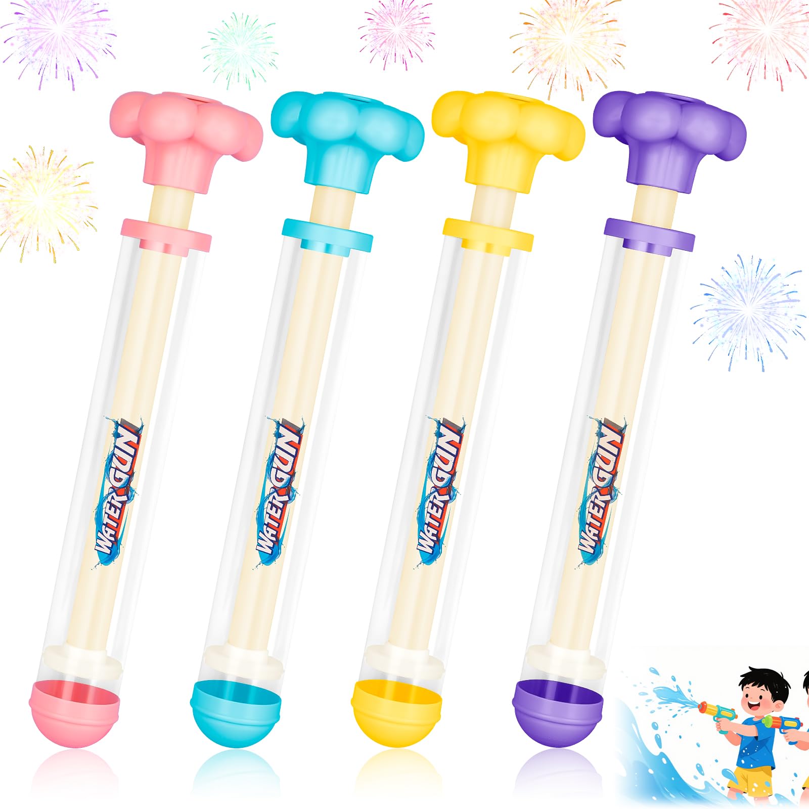 Paquete de 4 pistolas de agua de fuegos artificiales, pistola de pulverización de agua estilo fuegos artificiales románticos para