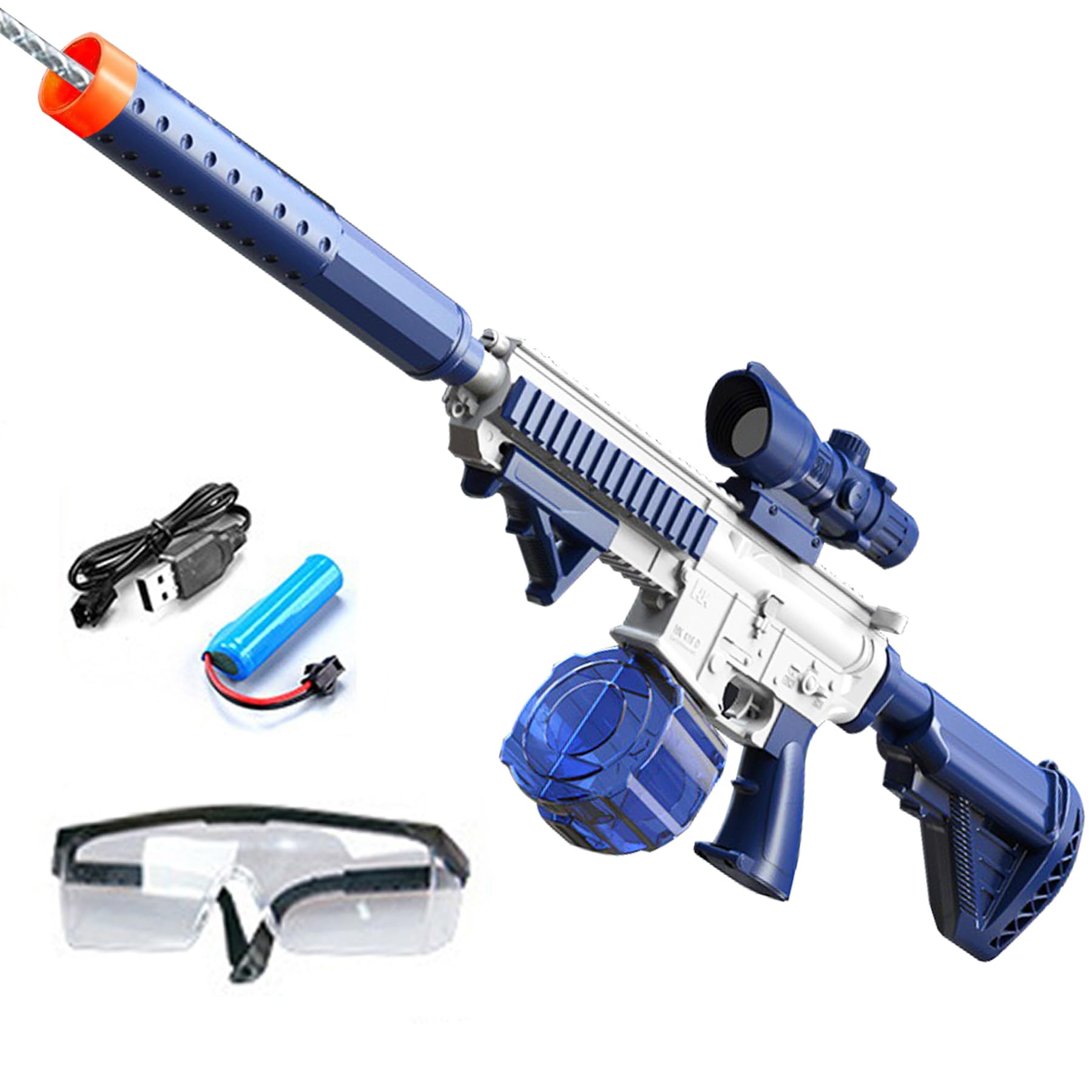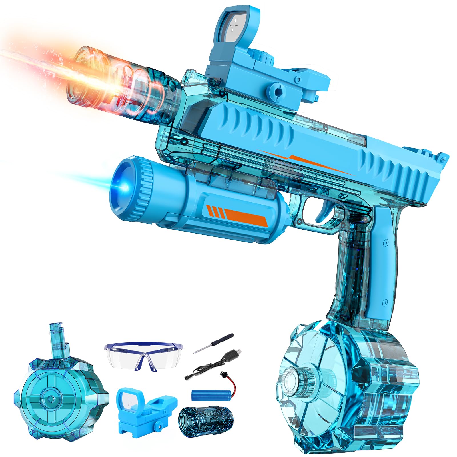 Potente pistola de agua eléctrica, silenciador brillante, pistola de chorro automática de hasta 32 pies de largo alcance, 300 disp