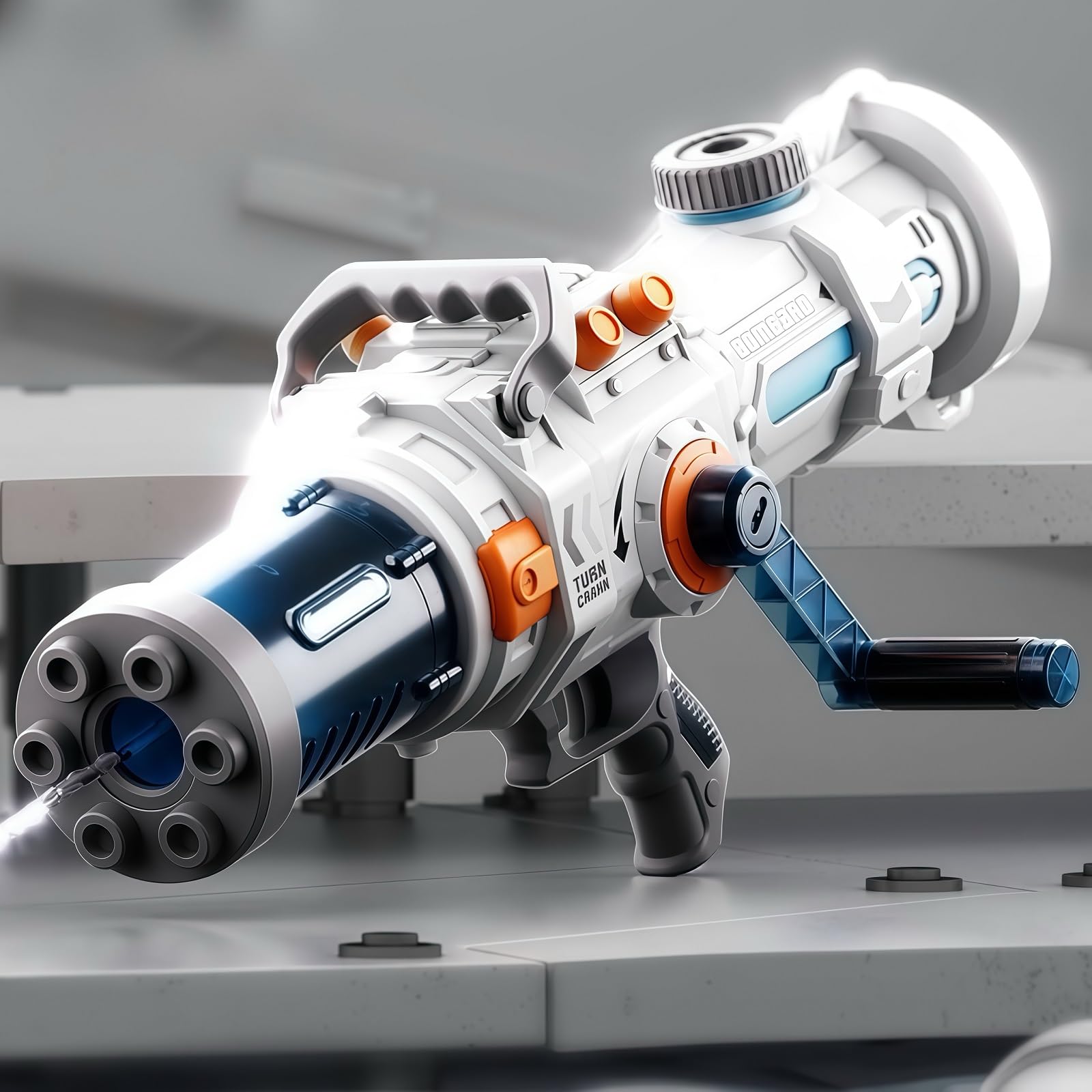Pistola de agua manual Rocker Gatling, pistola de chorro de forma fresca y linda, pistola de agua de largo alcance de 20 pies para